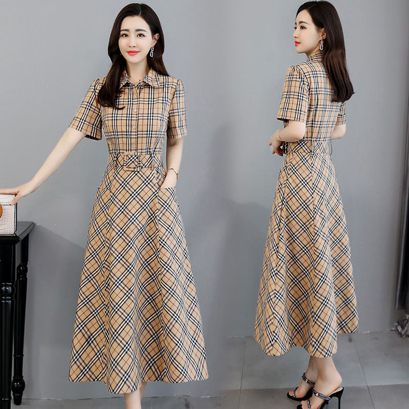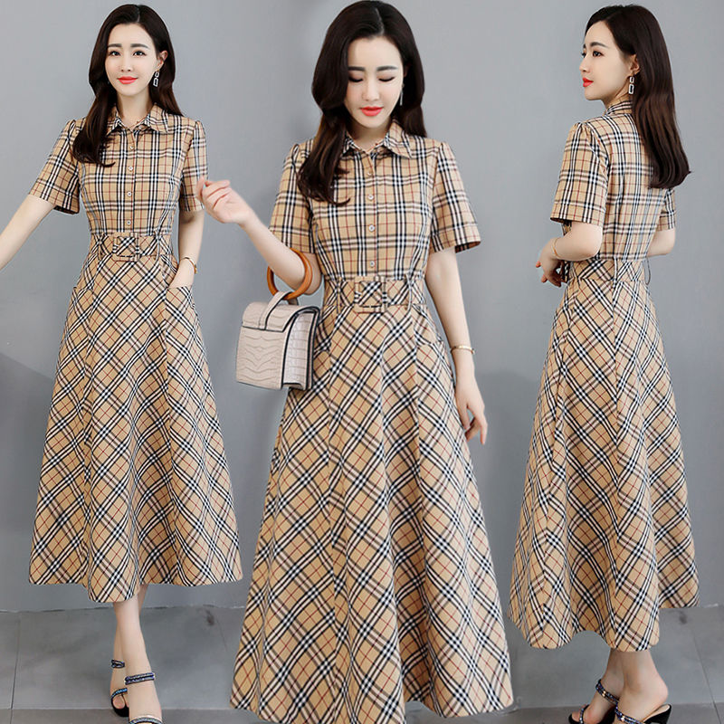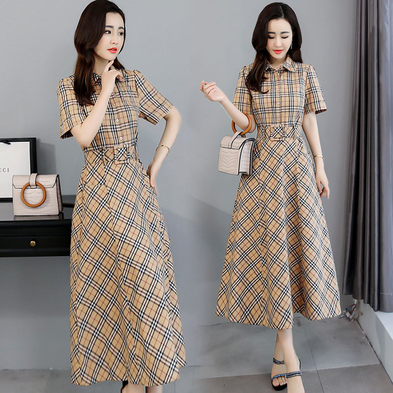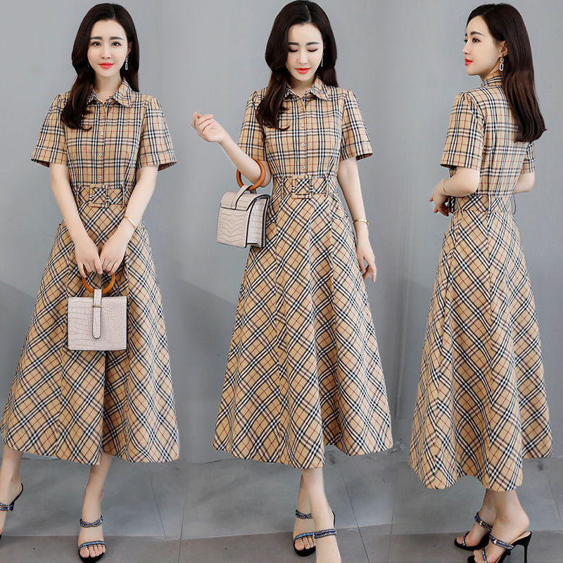 Mid-length plaid dress women's summer version waist-like temperament houndstooth bottoming skirt