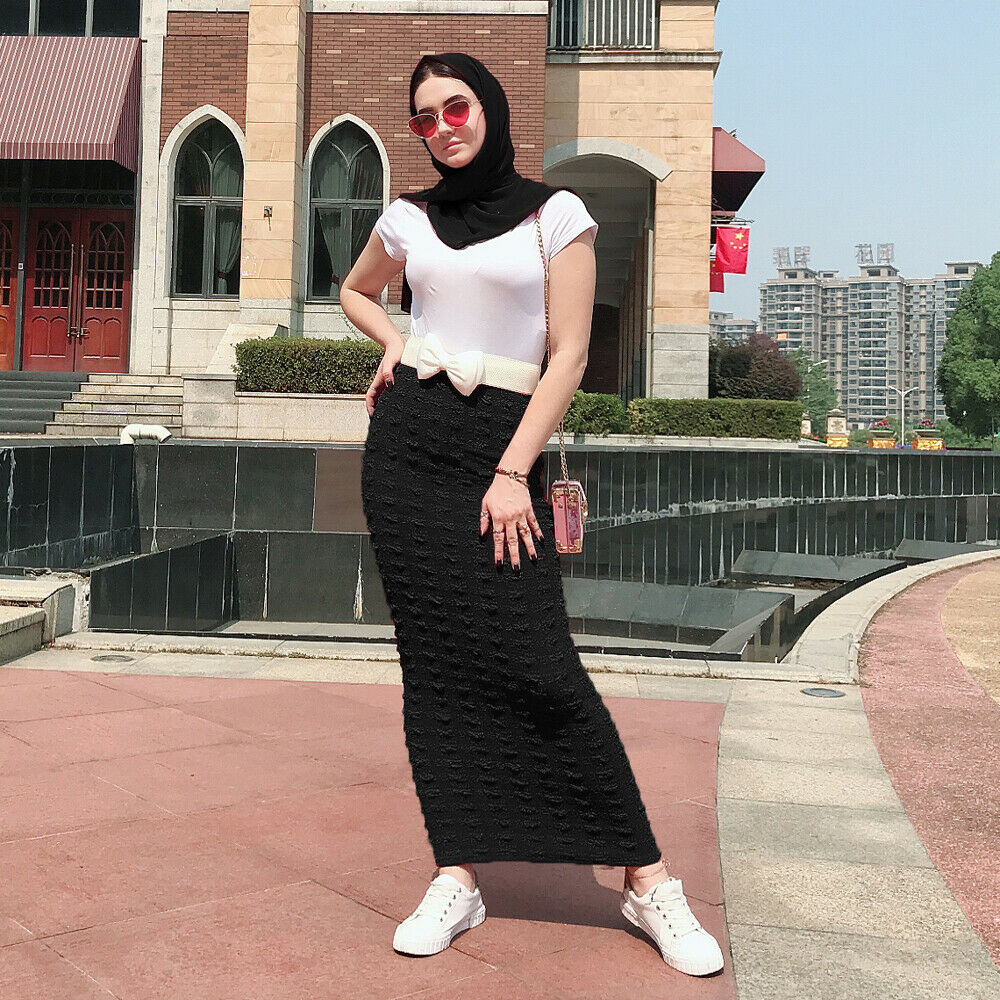 Muslim Women Long Bodycon Pencil Skirt Islamic Stretch Spring Evening Cocktail Party Knitting Casual Ladies Maxi Skirt