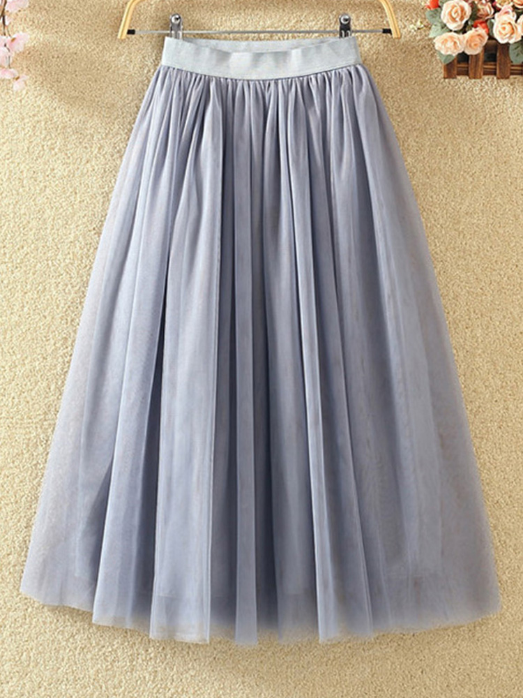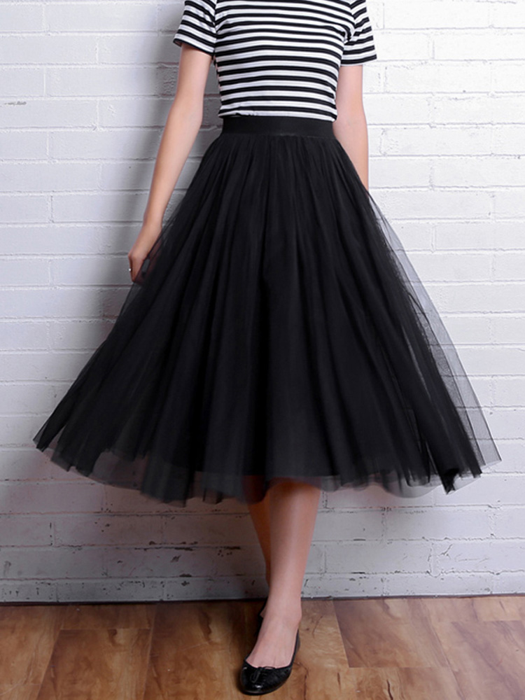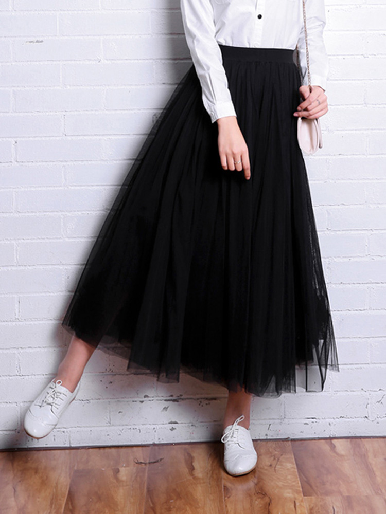 OHRYIYIE Vintage Tulle Skirt Summer Women Elastic High Waist Mesh Skirt Lady Long Pleated Tutu Skirt Female Jupe Longue