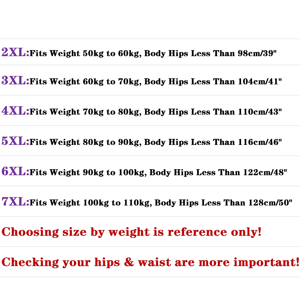 Size : 2XL,3XL,4XL,5XL,6XL,7XL