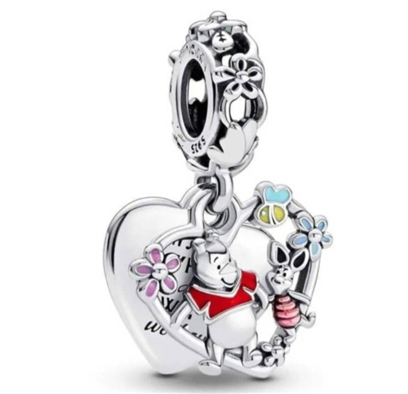 Pooh & Tigger Pendant Charm 925 Sterling Silver Delicate Jewelry for Women Silver Bracelet DIY Beads