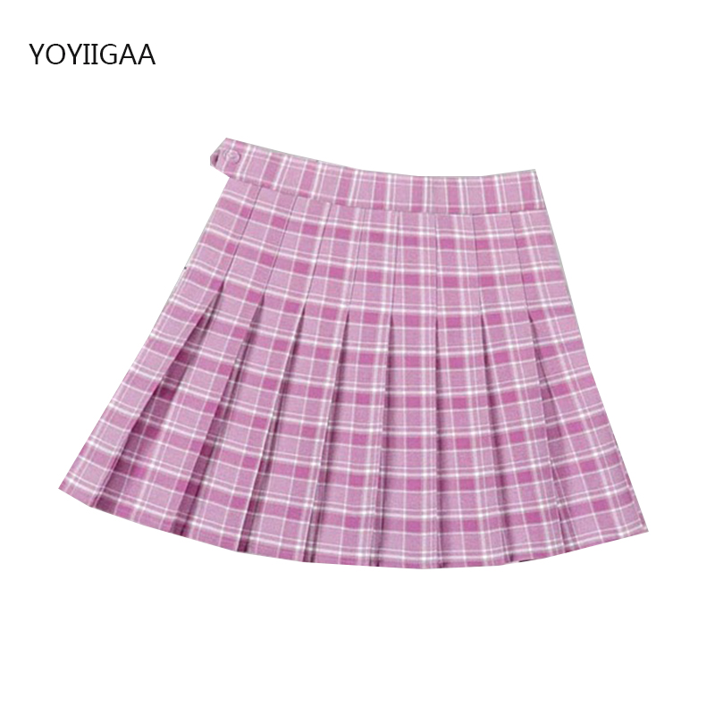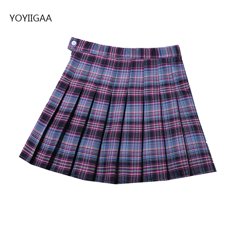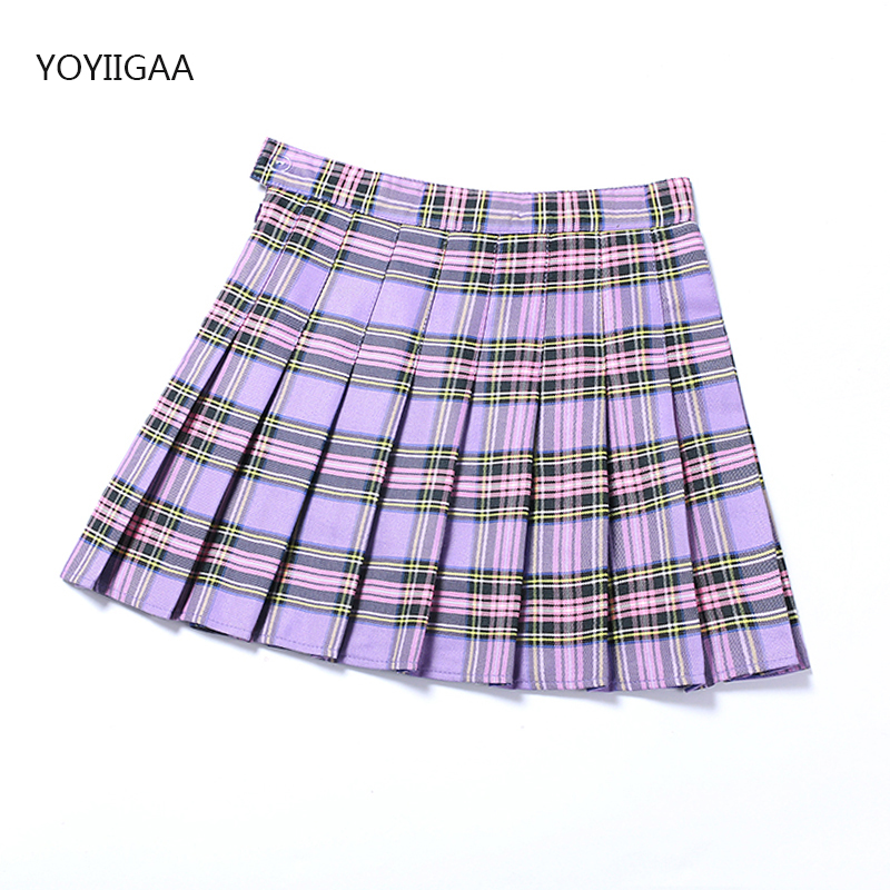 Purple Women Pleated Skirts High Waist Woman Plaid Mini Skirt Preppy Style Casual Female Skirts Sweet A-line Ladies Short Skirt