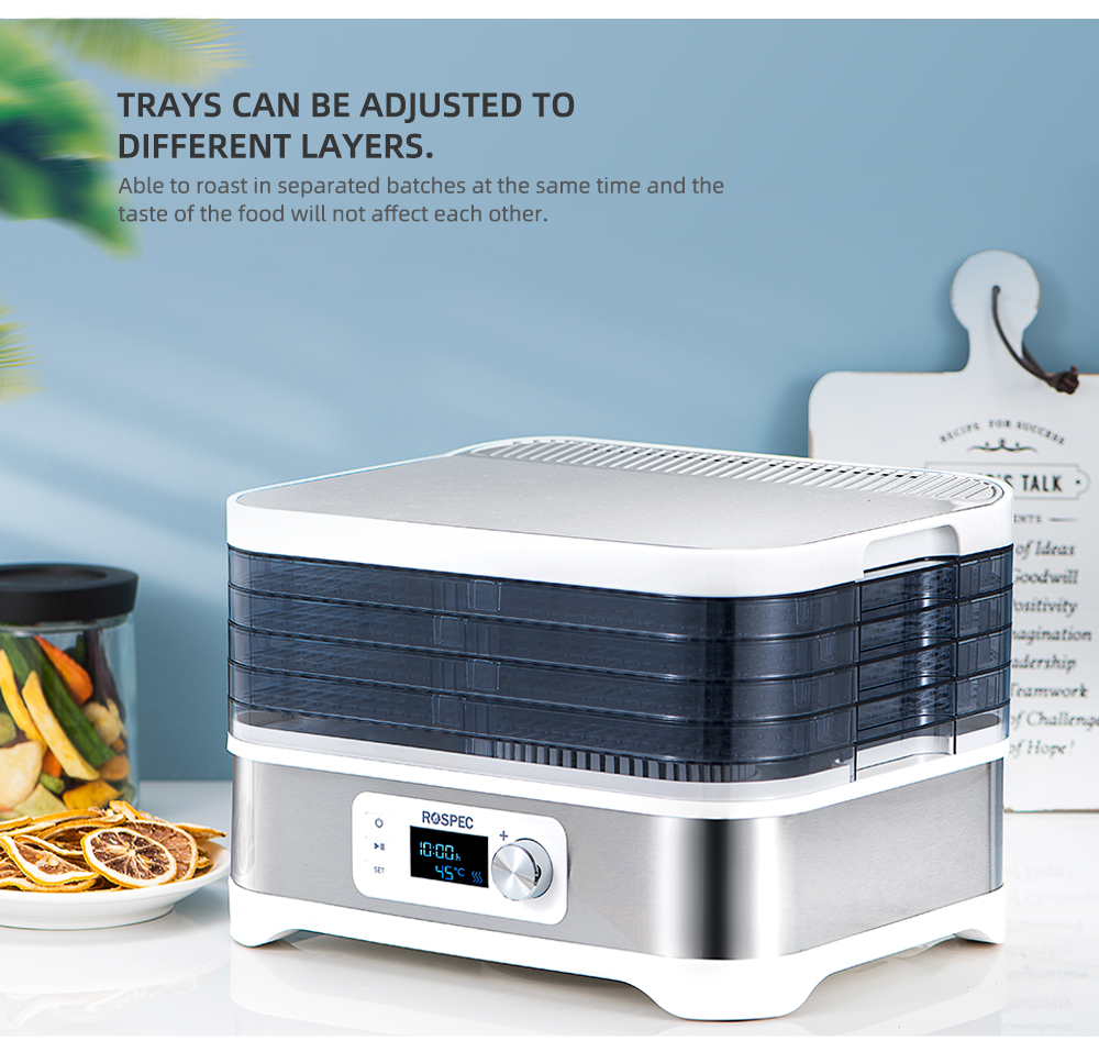 [{"attrName":"Brand Name","attrValue":"ROSPEC"},{"attrName":"Origin","attrValue":"Mainland China"},{"attrName":"Inner Container Material","attrValue":"Stainless steel"},{"attrName":"Inner Container Layer","attrValue":"Five Layers"},{"attrName":"Power","attrValue":"<600W"},{"attrName":"Certification","attrValue":"CE"},{"attrName":"Model Number","attrValue":"FD-1200E"},{"attrName":"Rated Power","attrValue":"400W"},{"attrName":"Digital control panel","attrValue":"LCD Display Screen"},{"attrName":"Capacity","attrValue":"10L"},{"attrName":"Timer adjust","attrValue":"1 - 24 hours"},{"attrName":"Electric voltage","attrValue":"220 - 240V"}]