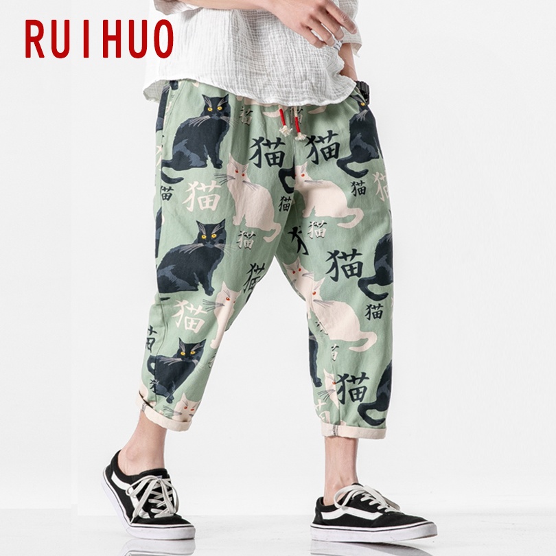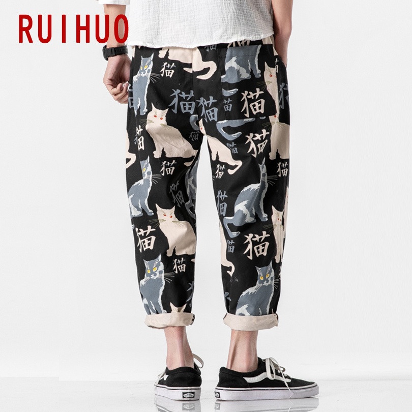 RUIHUO 2022 New Cat Print Harem Pants Men Trousers Casual Baggy Pants Men Ankle-Length Sweatpants Hip Hop Streetwear M-5XL