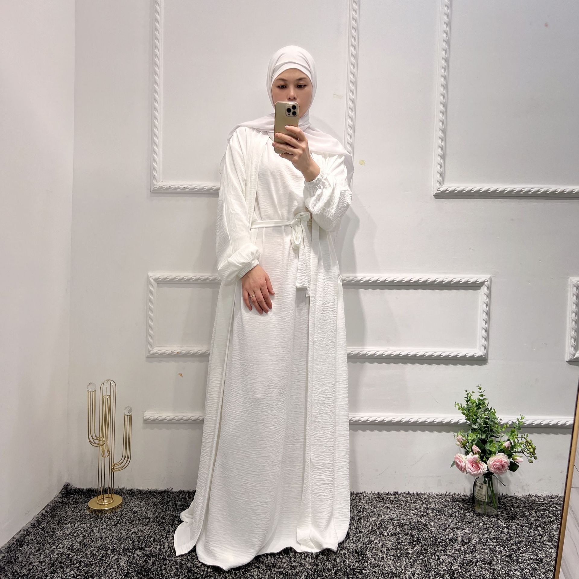 Ramadan Eid Middle East Plain Clothing Abaya Dubai Turkey Muslim Kimono for Women Arab Islamic Robe Cardigan with Pocket Femme