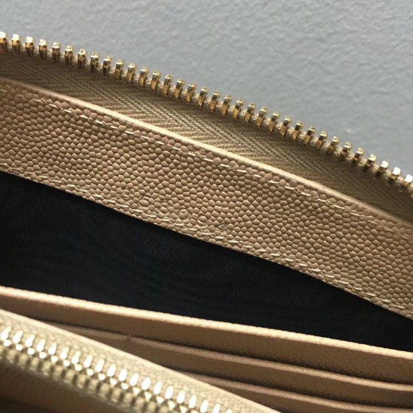 Saint Laurent Monogram Zip Around Wallet In Powder Grained Leather