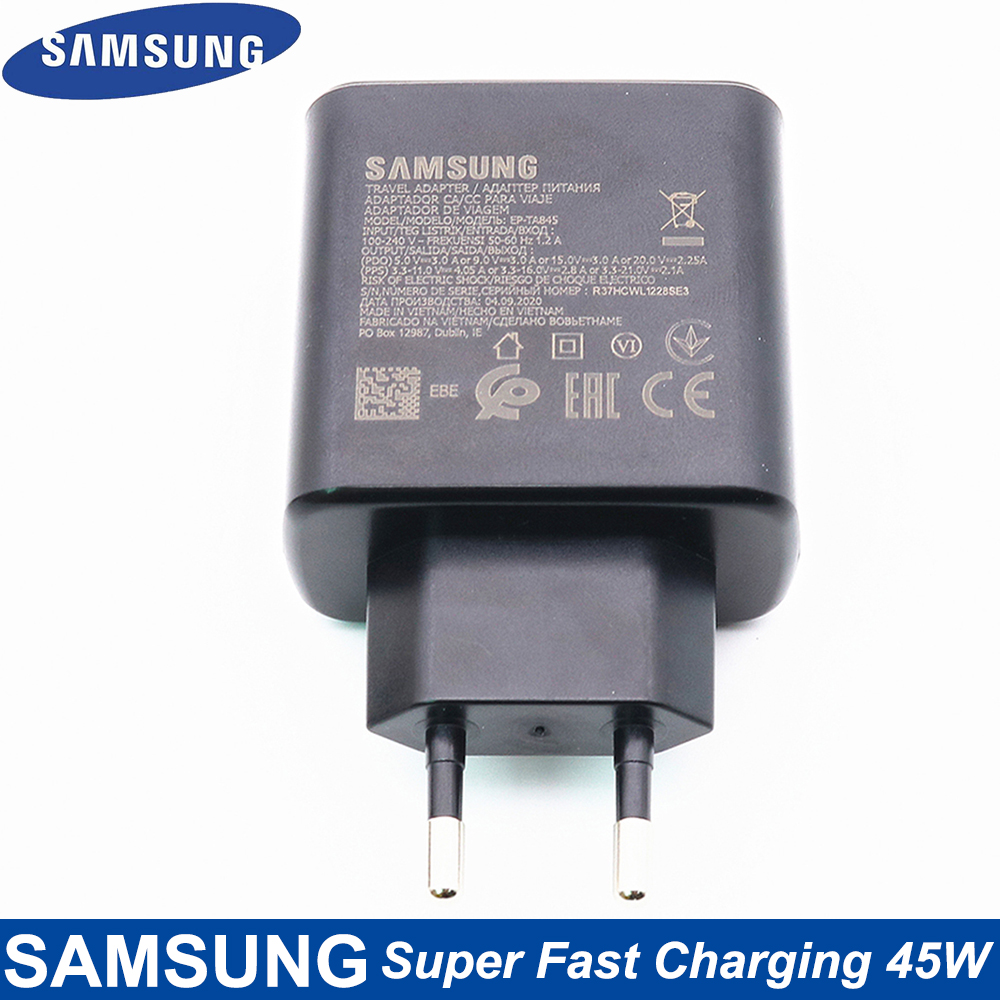 Samsung Original 45W Super Fast Charger Double Type-C Cable For Galaxy Note 10 Plus Note 10+ 5G USB C Fast Charging Wall Charger