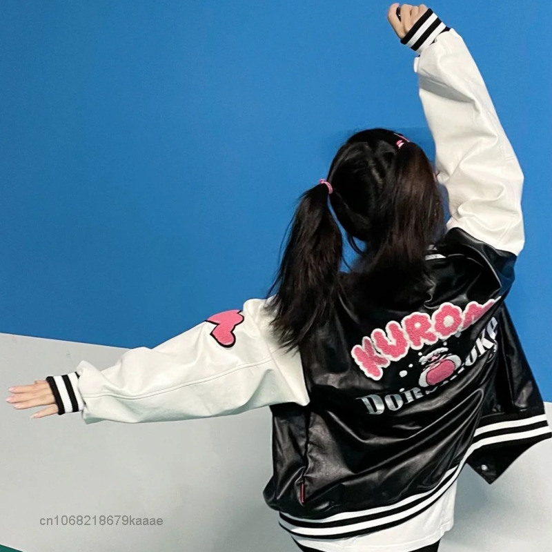 Sanrio Clothes Cartoon Kuromi Leather Coat High Baseball Jacket Autumn Women Embroidered Jacket Y2k Couples Tops