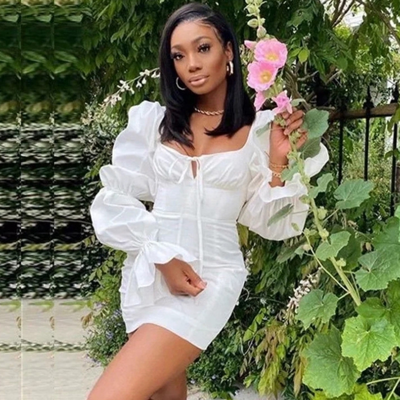 Sexy Puff Sleeve Bodycon Mini Dress Bandage Birthday Party Outfits for Women Backless Y2k Clothes Night Club Dresses