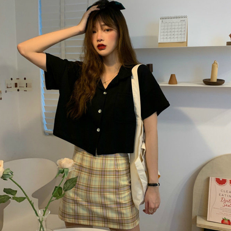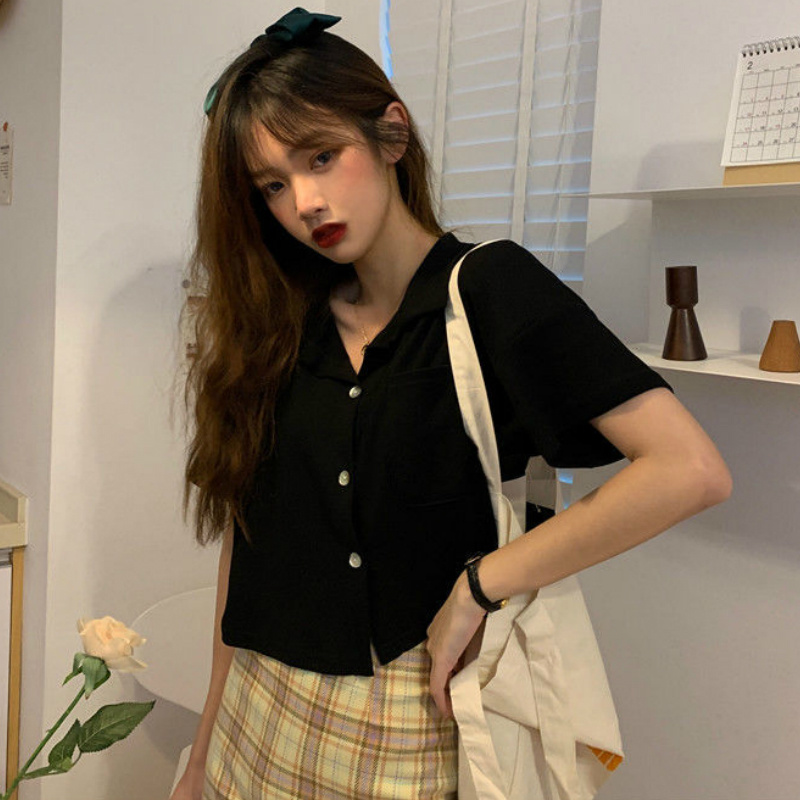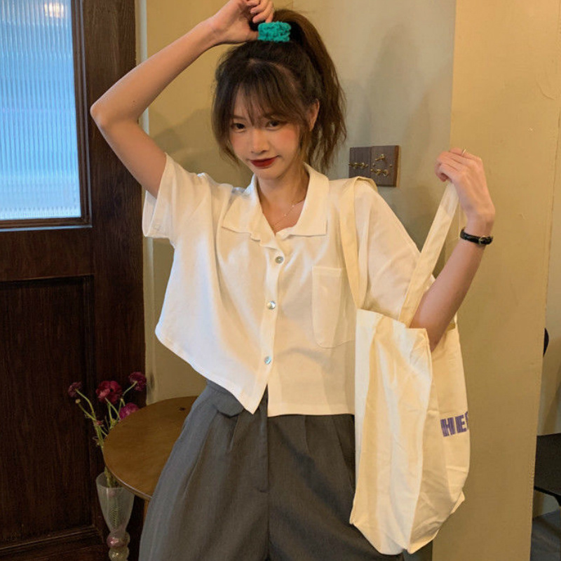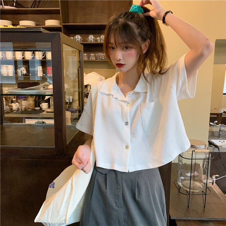 Shirts Women Pocket Solid Short Sleeve Casual Sweet Simple Summer Crop Tops Womens s Style Designed Chic Streetwear Trendy