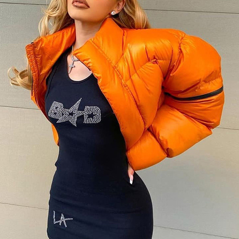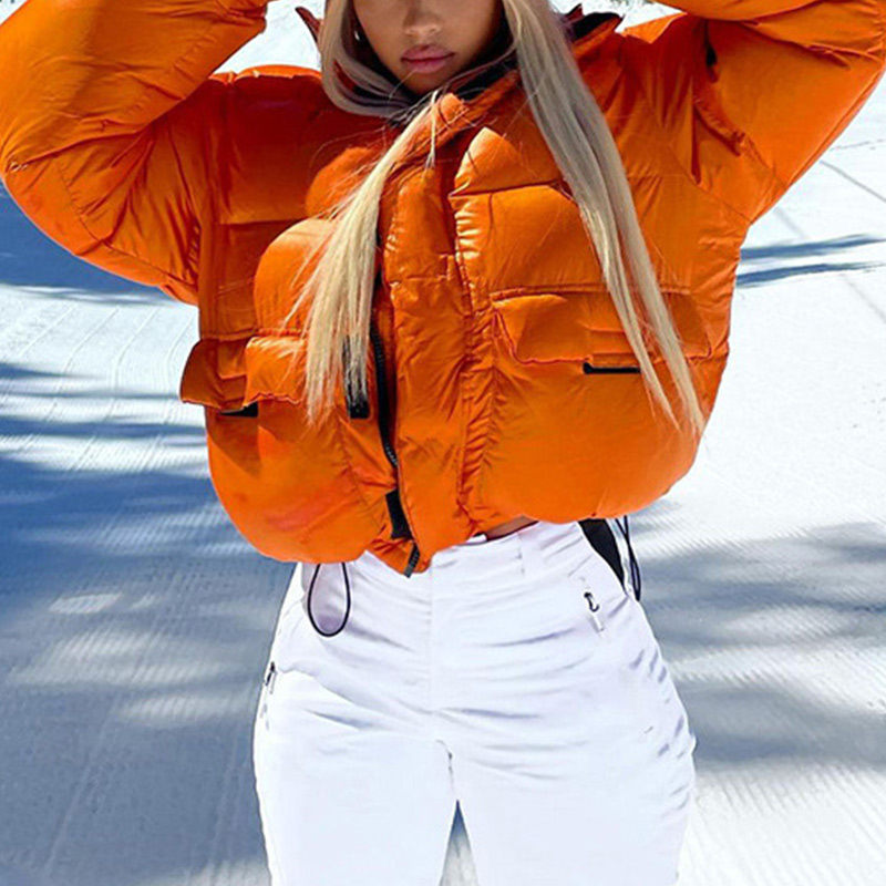 Solid Turtleneck Zipper Jacket Padded Puffer Parkas Jackets With Pocket Winter Women Long Sleeve Loose Short Warm Coat