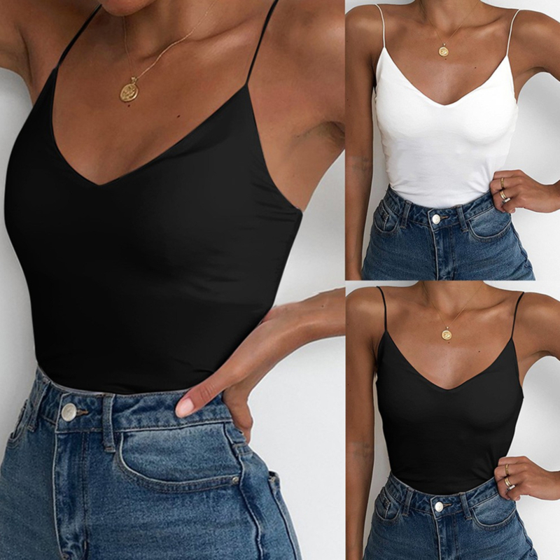 Spaghetti Strap Top V Neck Off Shoulder Sleeveless Solid Color Backless  Basic Tops Female Breathable 2020 Camisole