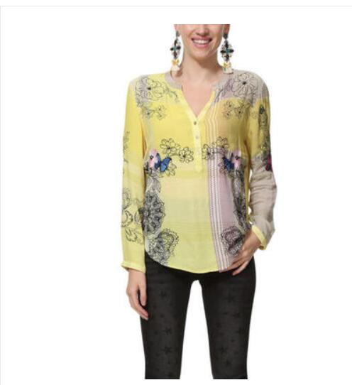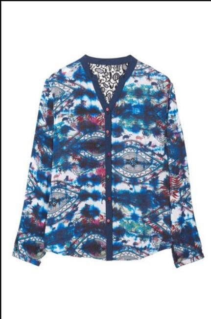 Spanish Desigual women's chiffon printed shirt tie-dye lace blouse embroidery patchwork color blouse blouse