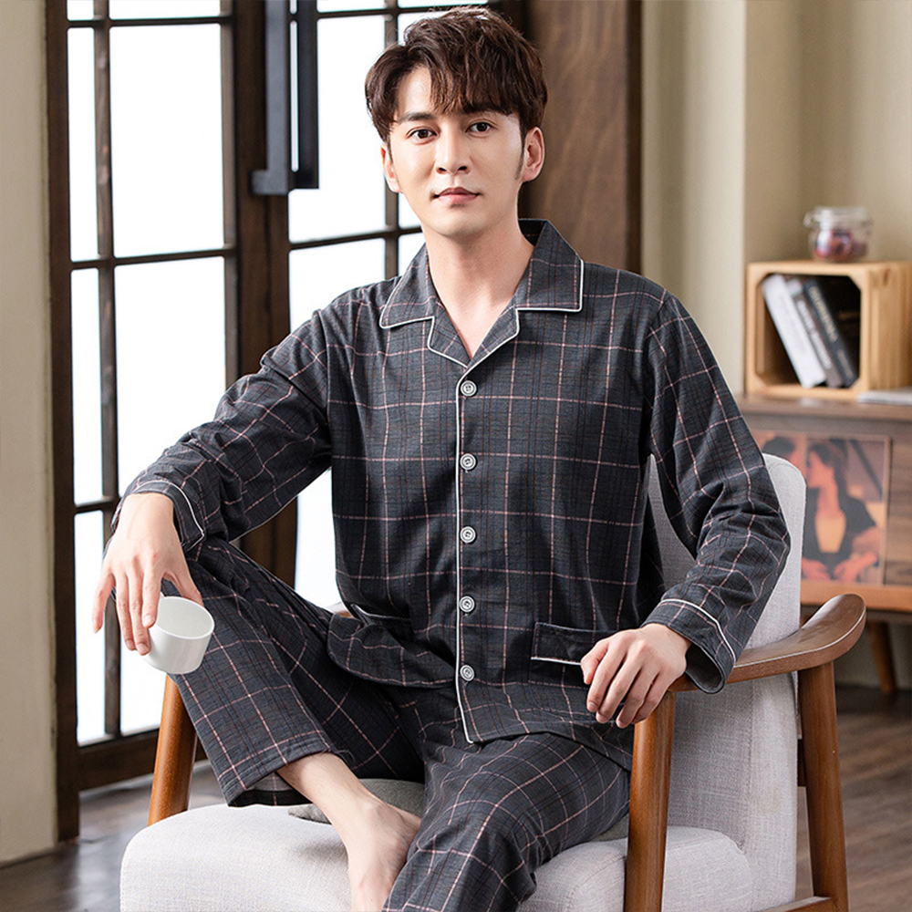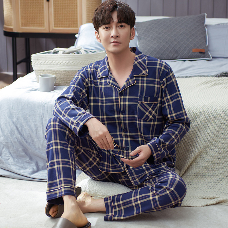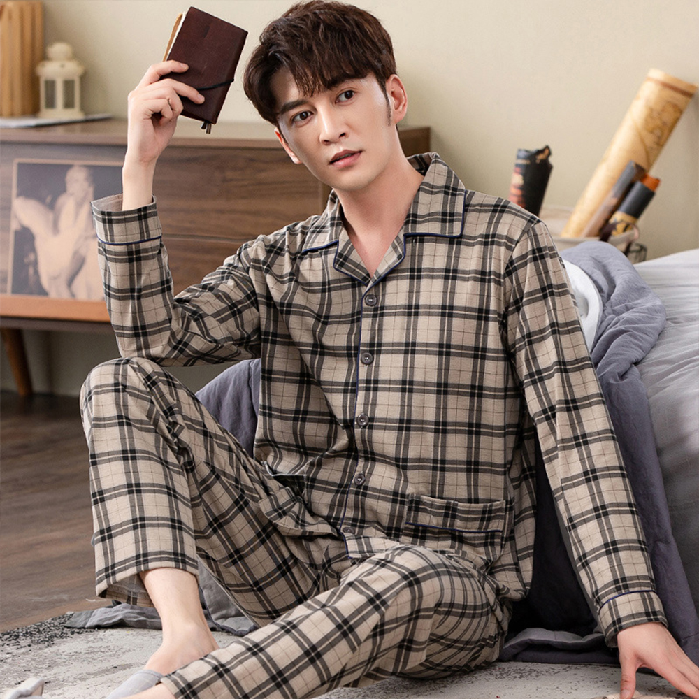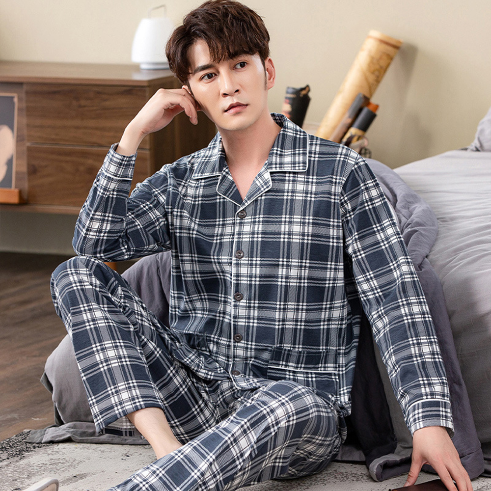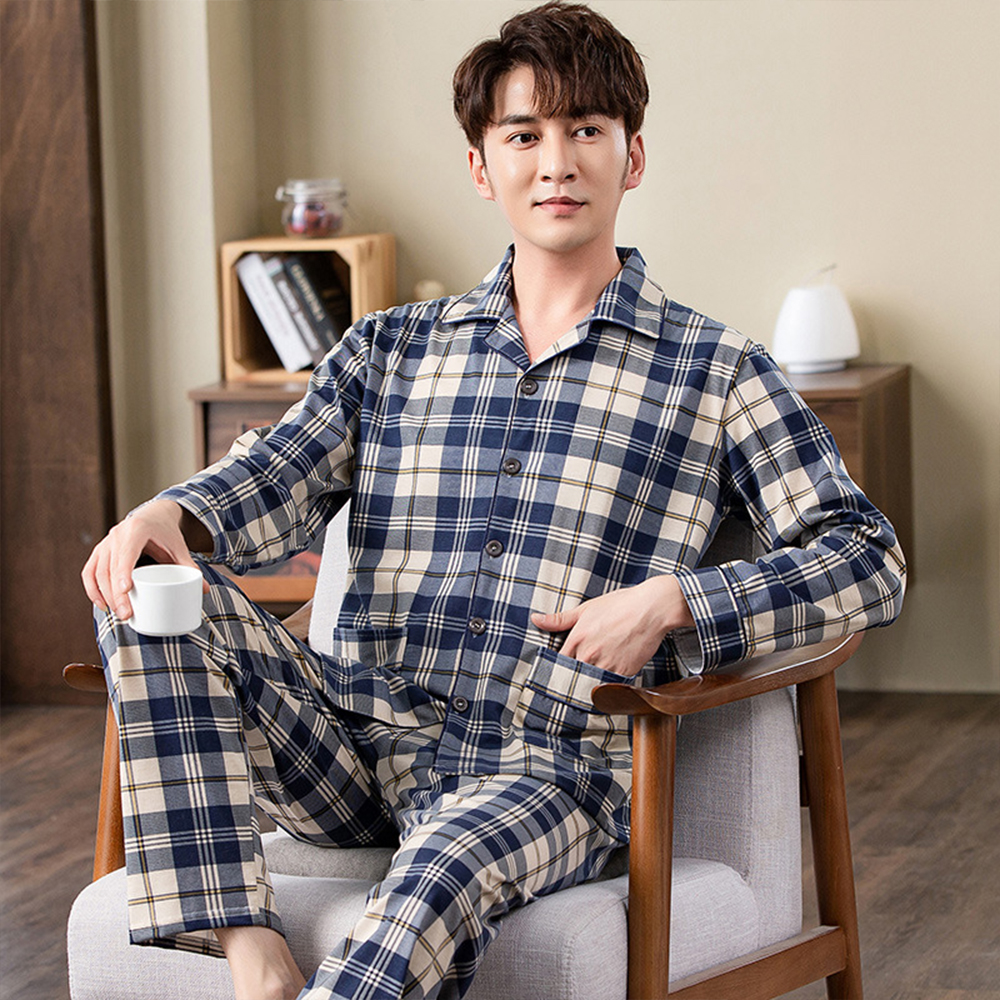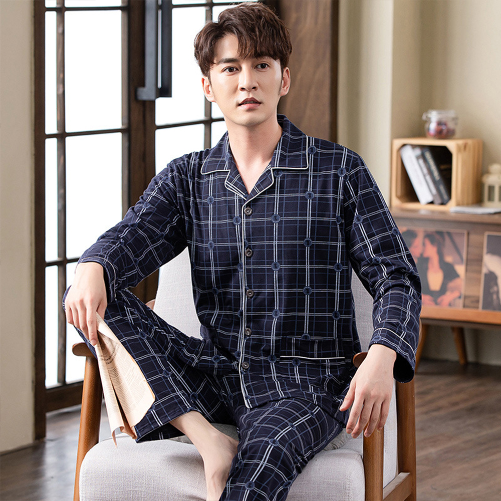 Spring autumn 100%Cotton Pajamas Sets For Men Plaid Sleepwear Suit Casual Home Clothes Pijamas Hombre Loungewear Plus Size 4XL