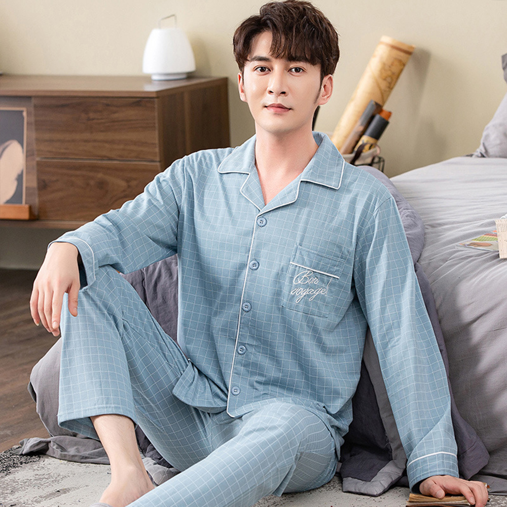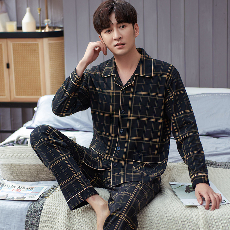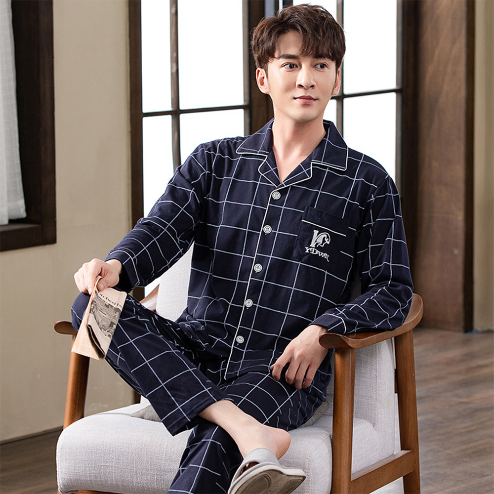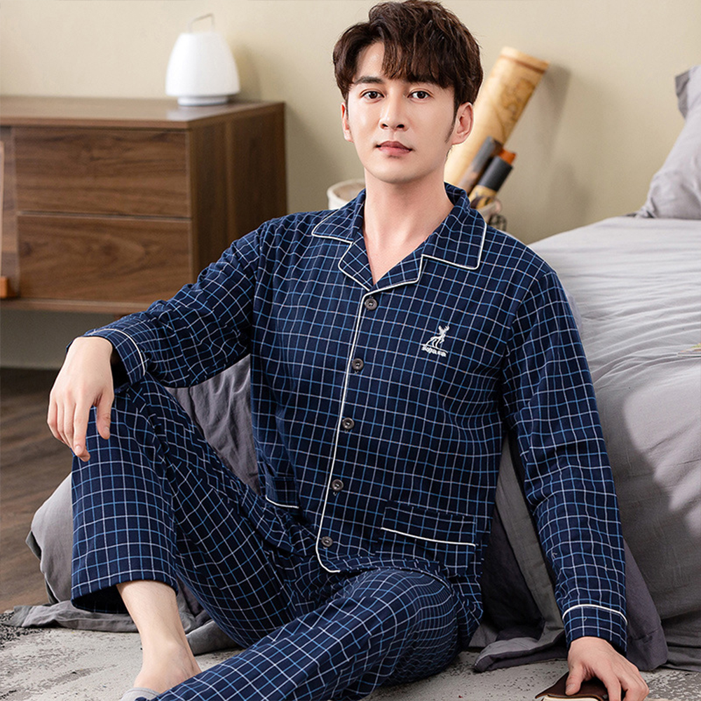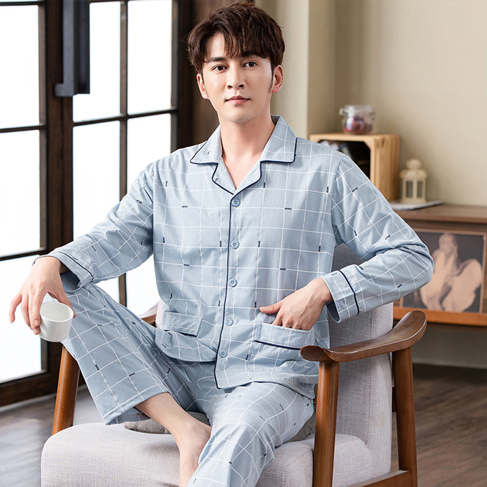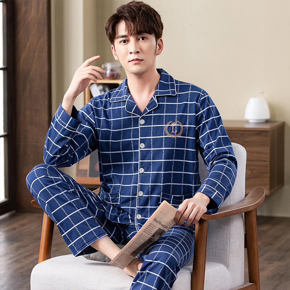 Spring autumn 100%Cotton Pajamas Sets For Men Plaid Sleepwear Suit Casual Home Clothes Pijamas Hombre Loungewear Plus Size 4XL