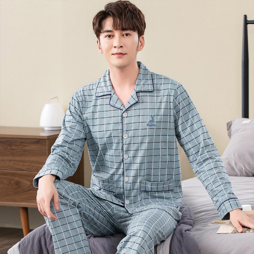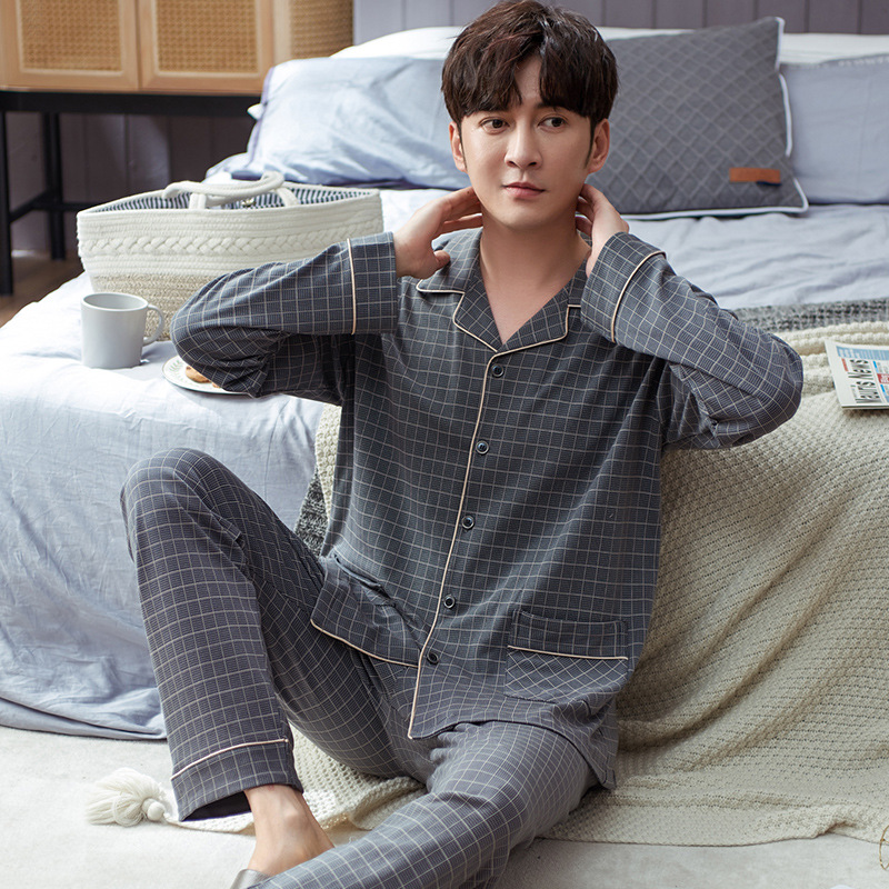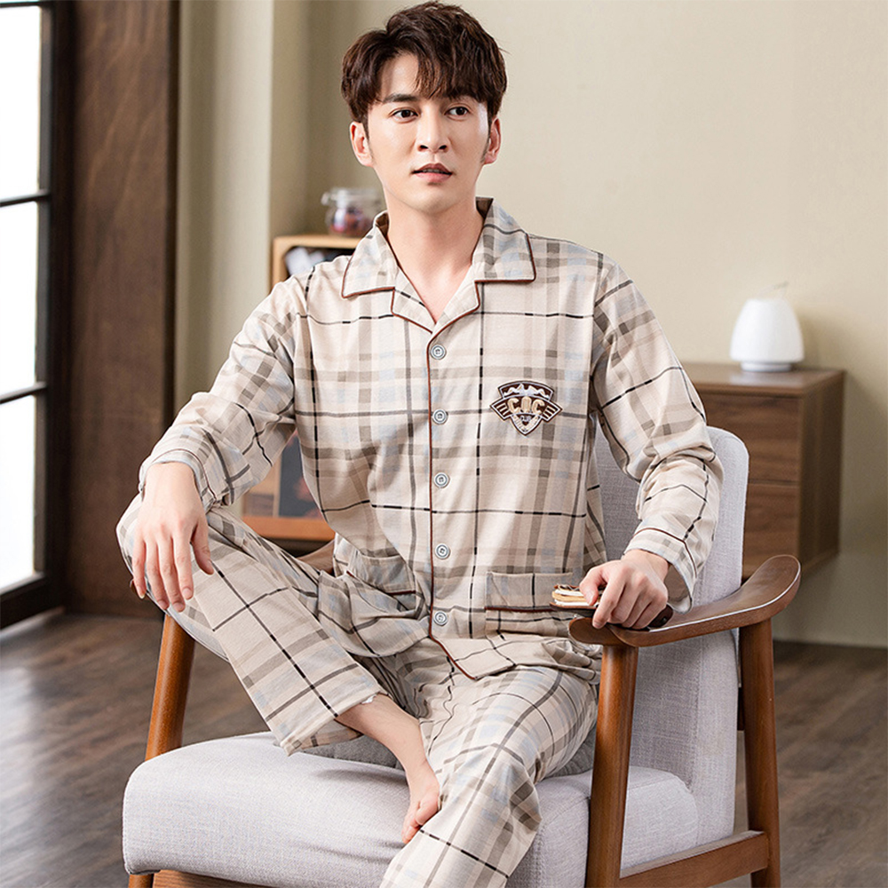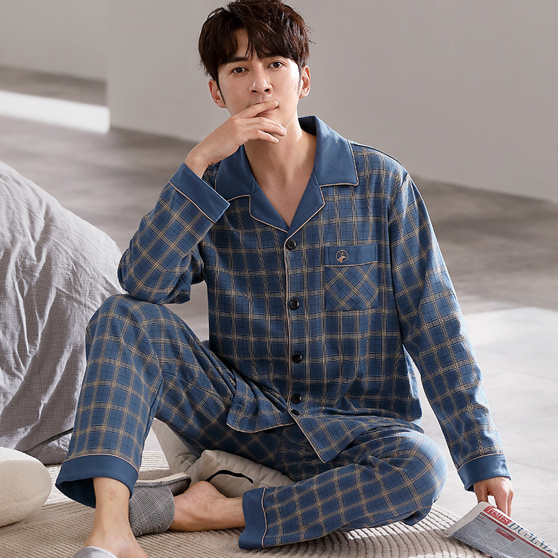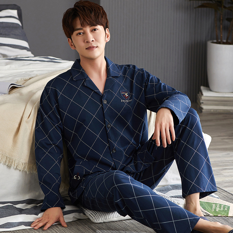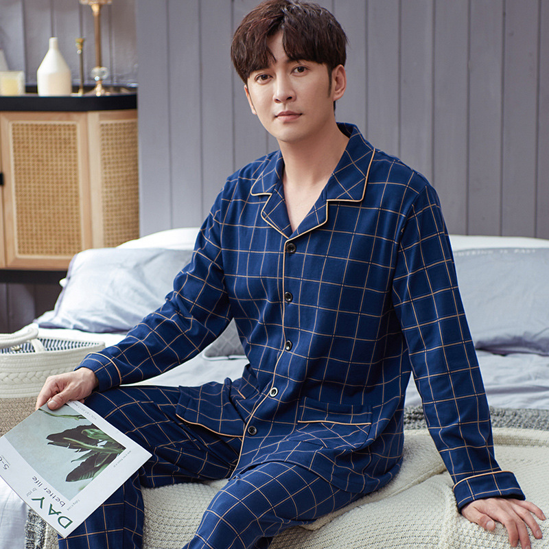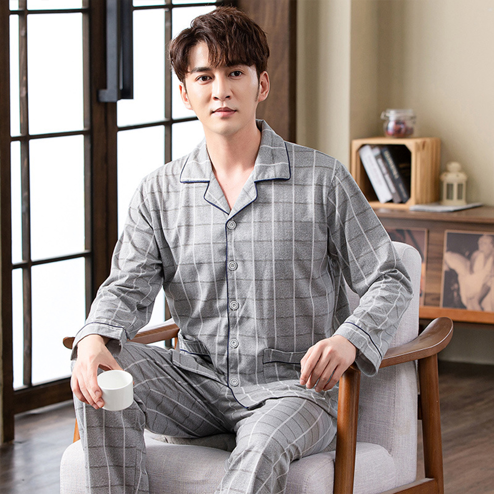 Spring autumn 100%Cotton Pajamas Sets For Men Plaid Sleepwear Suit Casual Home Clothes Pijamas Hombre Loungewear Plus Size 4XL