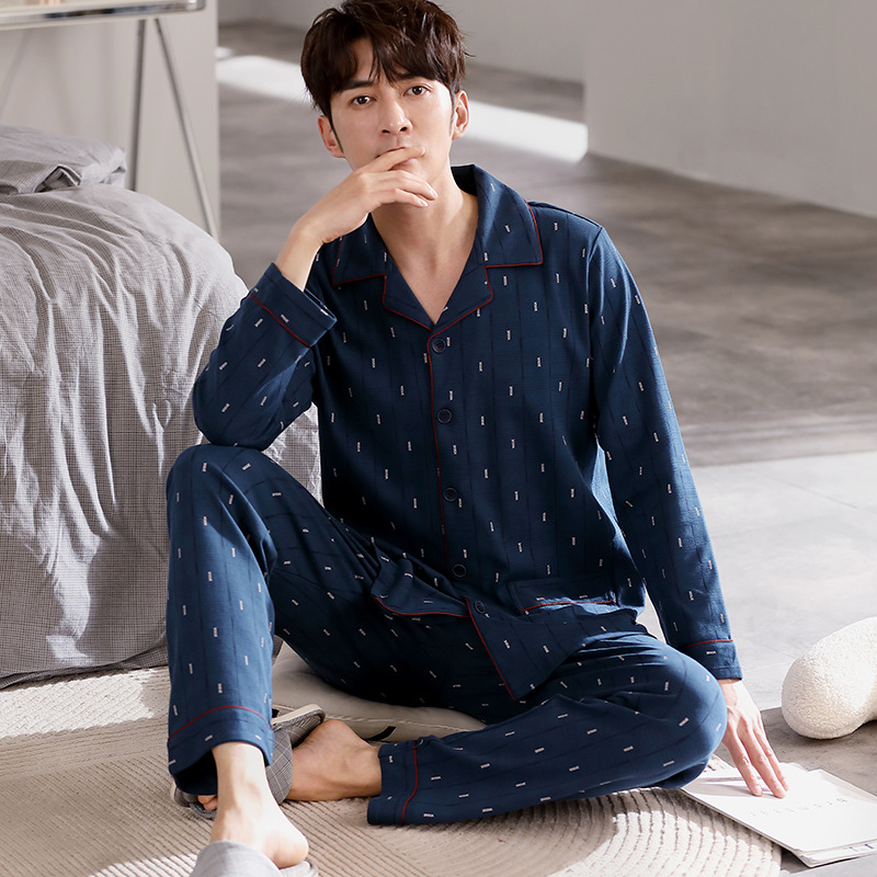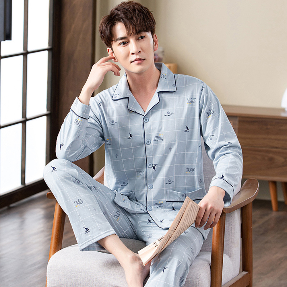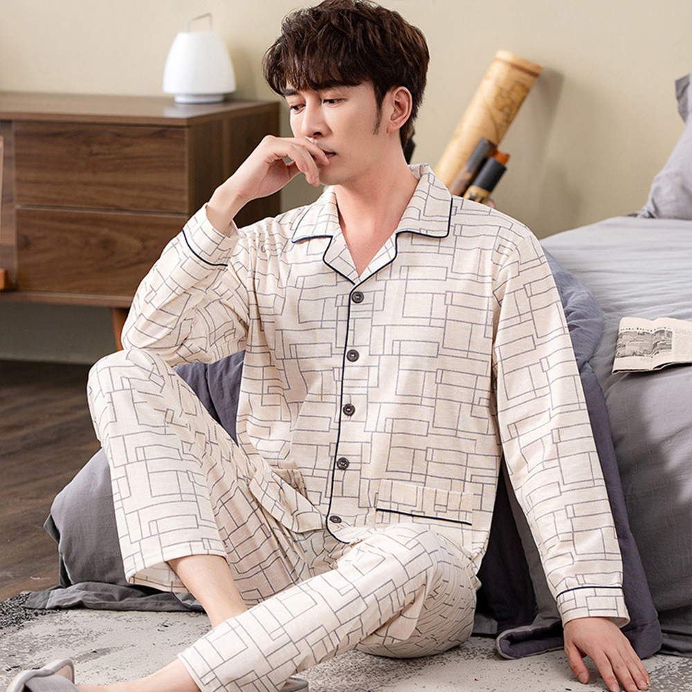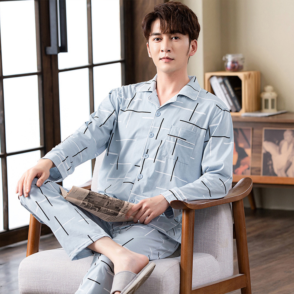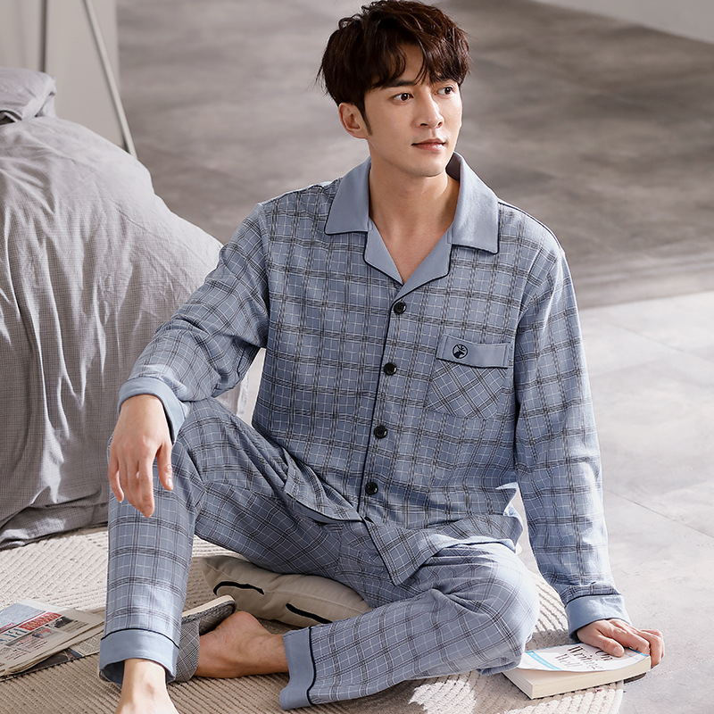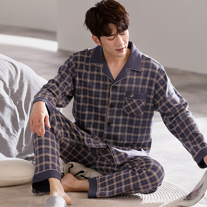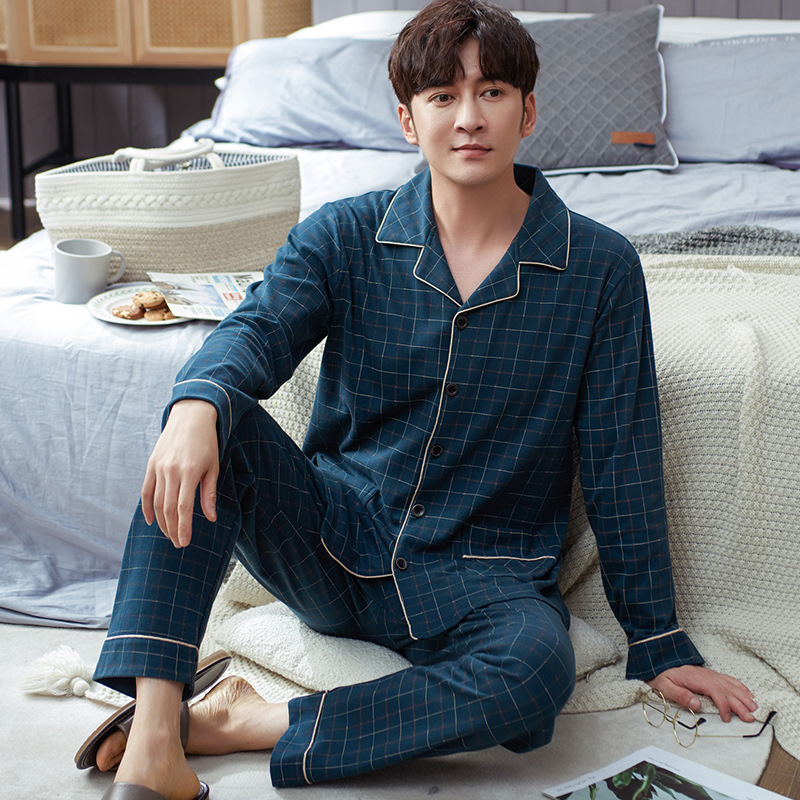 Spring autumn 100%Cotton Pajamas Sets For Men Plaid Sleepwear Suit Casual Home Clothes Pijamas Hombre Loungewear Plus Size 4XL