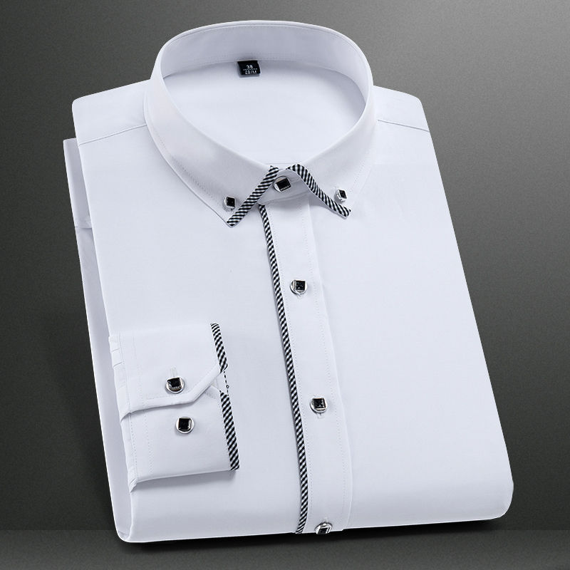 Stand Collar Long Sleeve Slim Fit Soft Comfortable Social Dress Shirts Men Party Wedding Male Tuxedo White Shirts