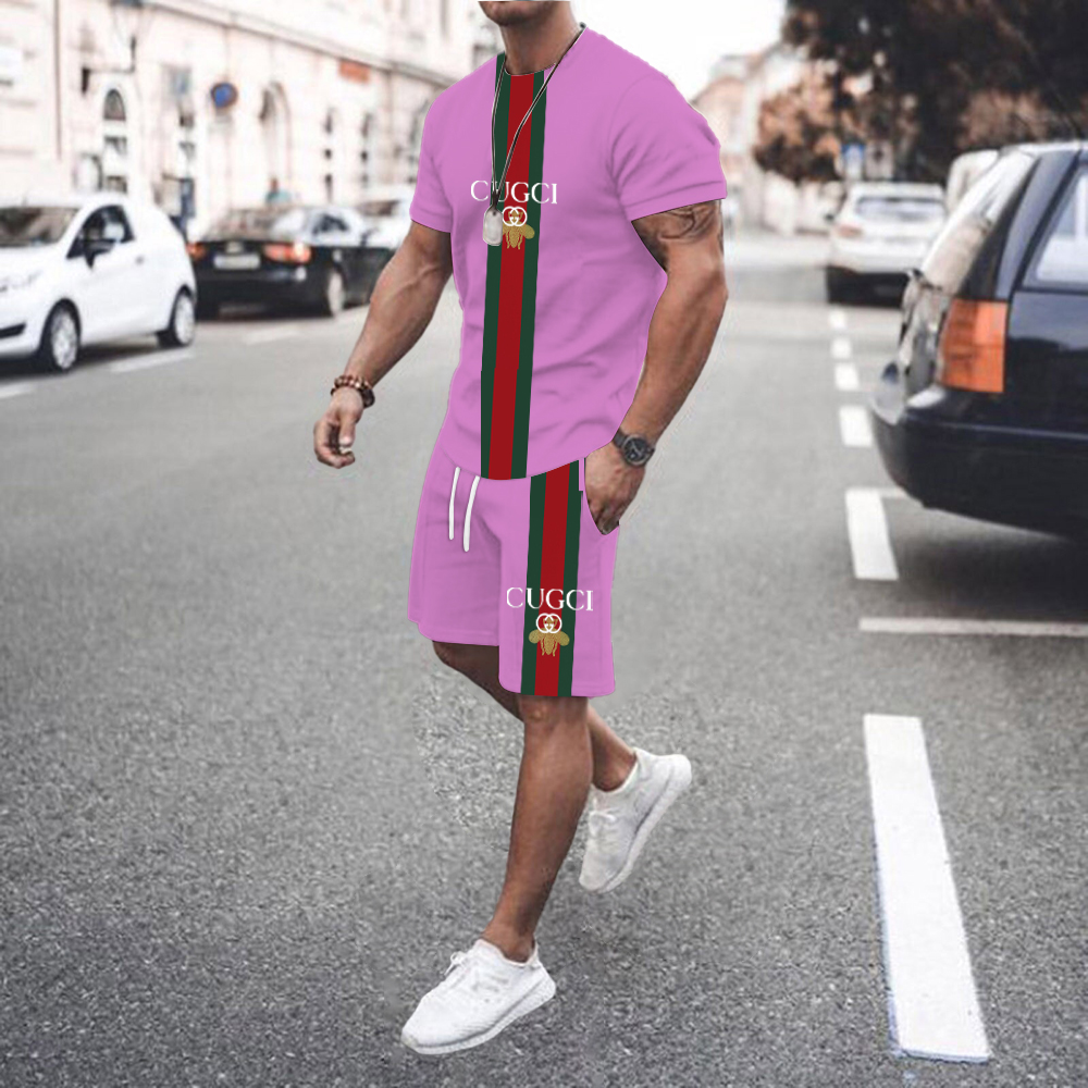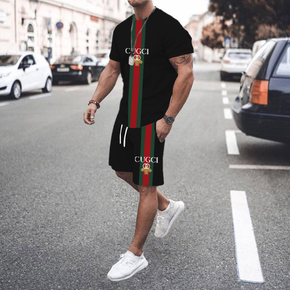 Summer Men Sets Men's Casual Sportswear Suit Oversized Sports Suit Short-sleeved T-shirt + Shorts 2-piece Set