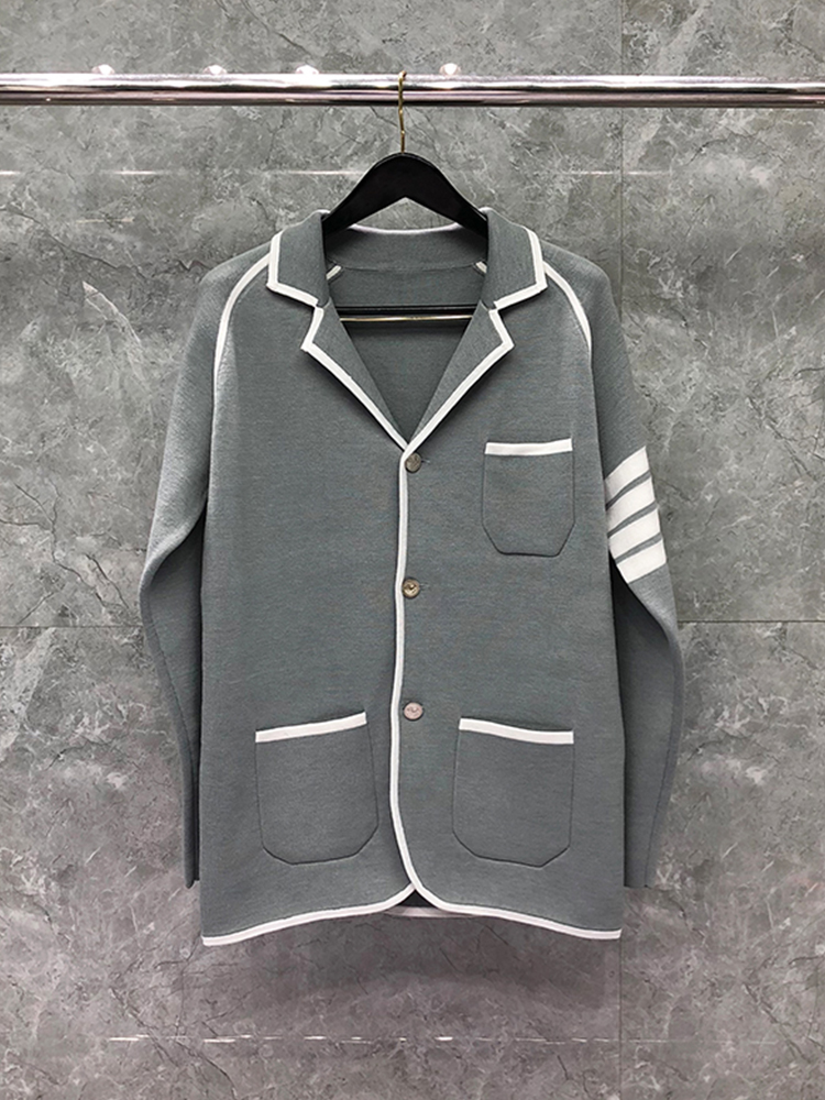 TB THOM Suit Spring Winter Man Jacket Blazer White Grosgrain Tipping Knit Coat Custom WholeTB Formal Suit