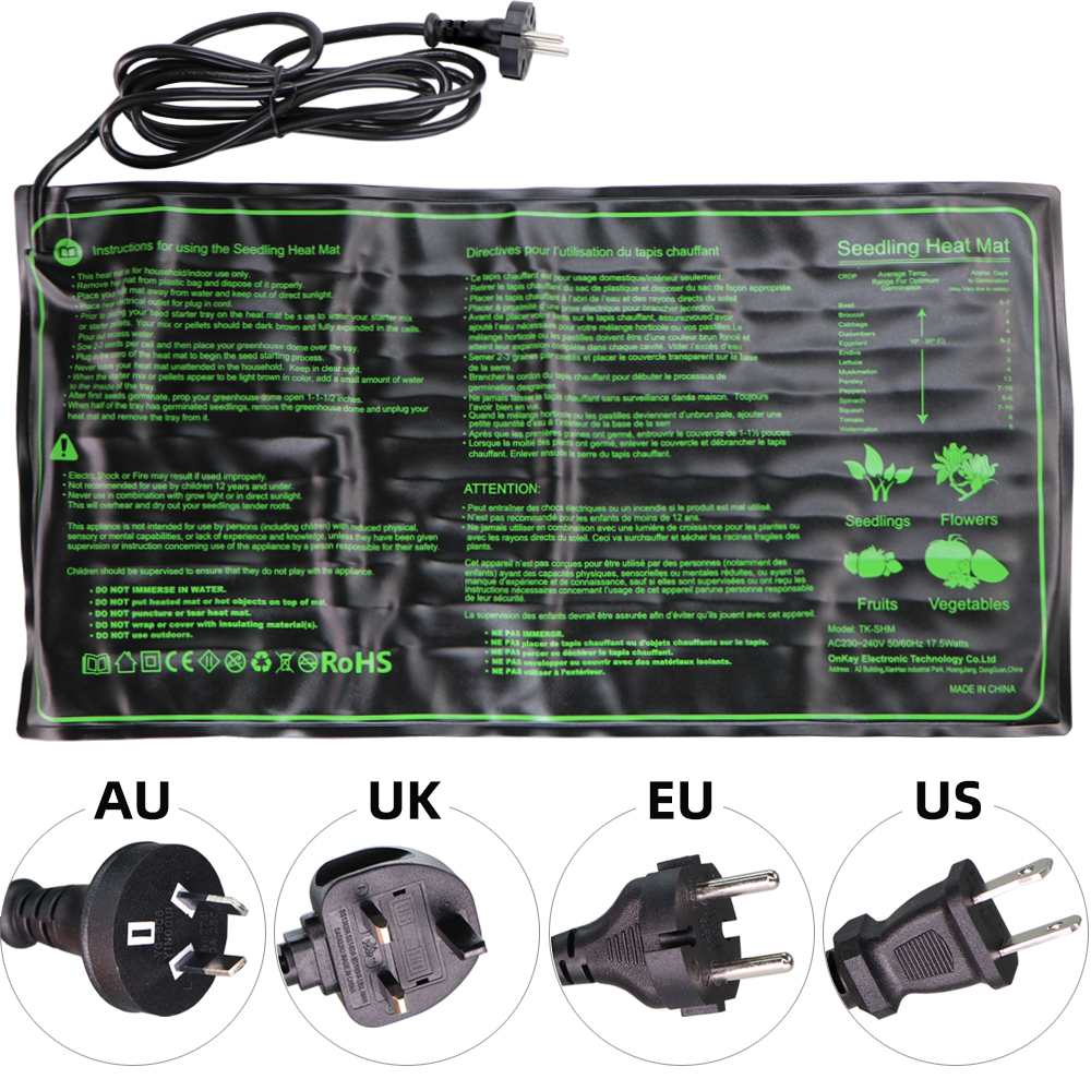 US UK EU AU Plug Waterproof Seedling Heating Mat 50x25CM Plant Seed Germination Propagation Clone Starter Pad Garden Supplies