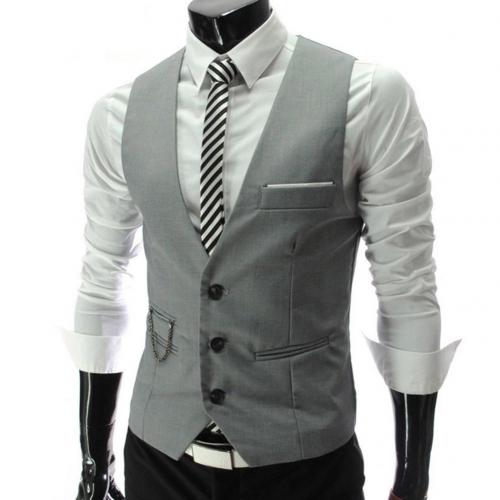 Vests Men Solid Color V Neck Sleeveless Button Pocket Blazer Suit Waistcoat