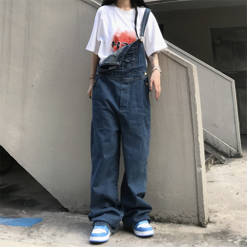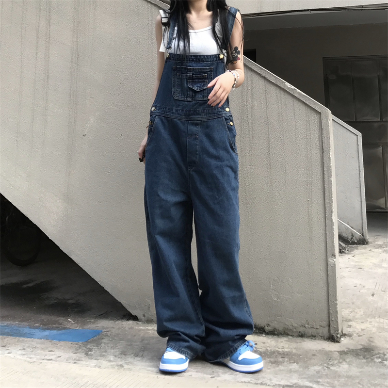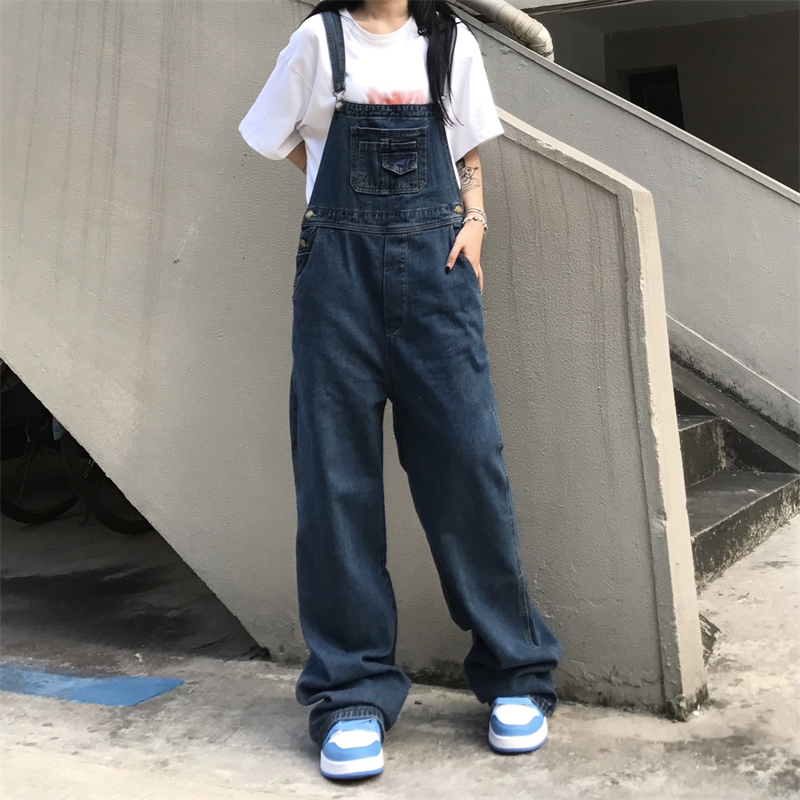 Vintage Boyfriend Jeans Overalls for Womens Japanese Harajuku Clothing Teenage High Street Baggy Denim Pants Streetwear