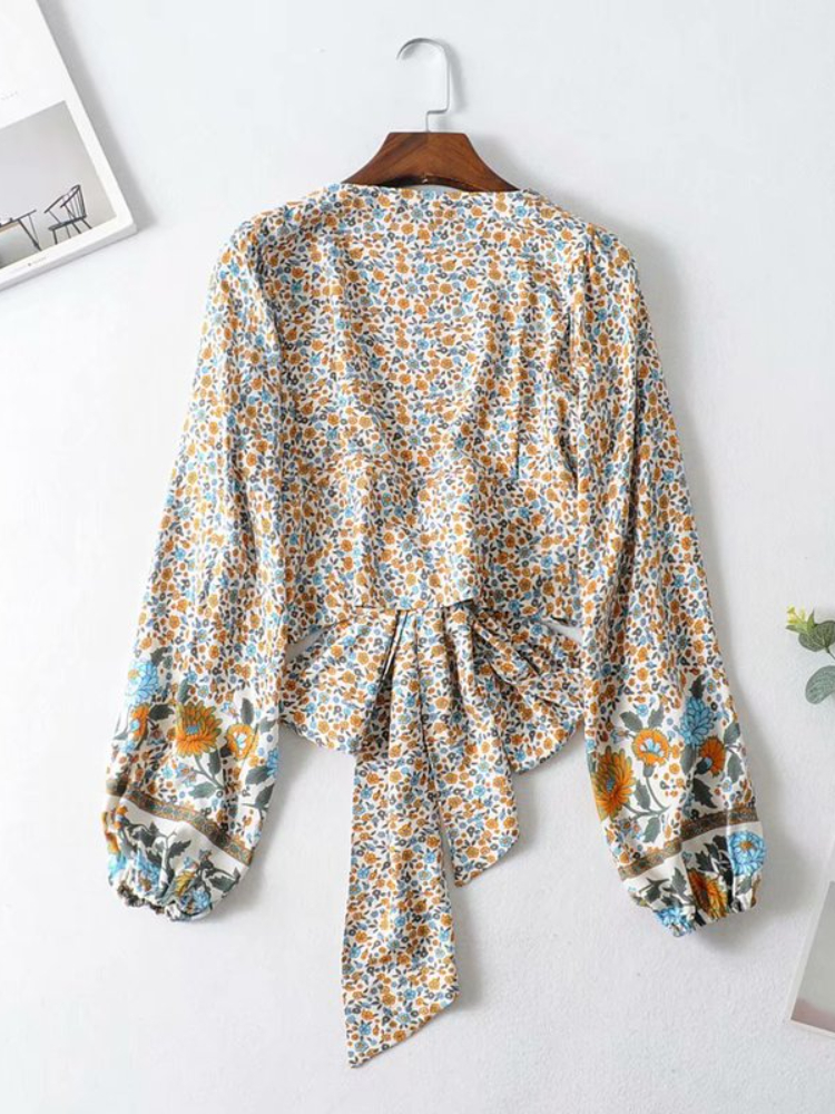Vintage Chic Women Floral Print Rayon Bohemian Blouse Ladies Loose Crop Top Long Sleeve Boho Shirts Kimono Cover-up