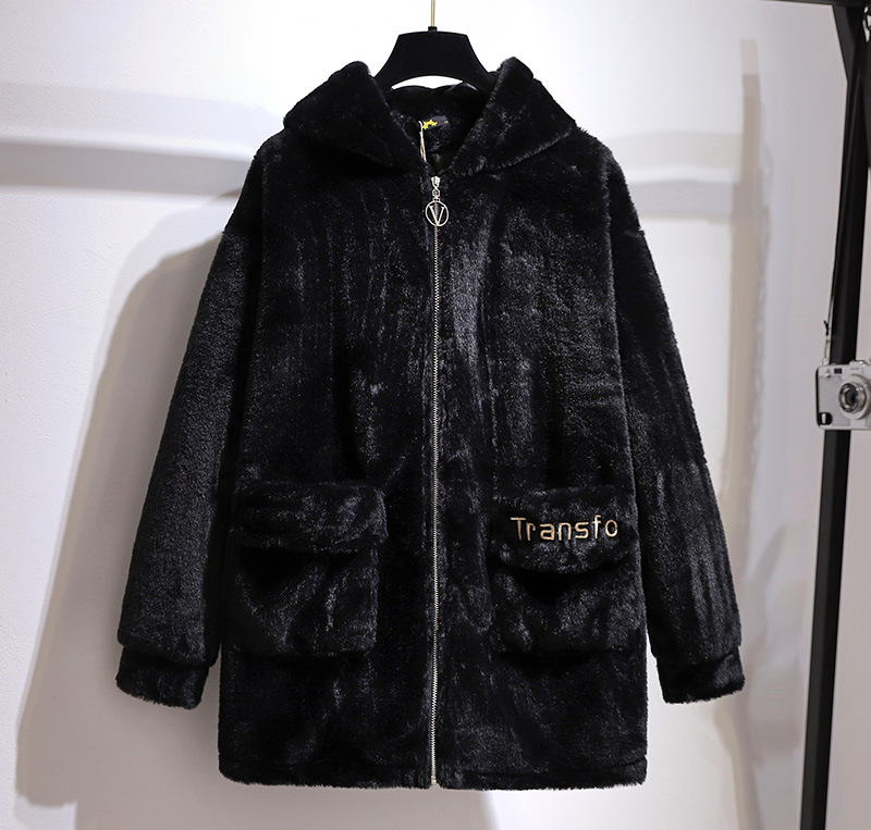 Winter Plus Size Women Clothing Hoodie Overcoat Large Long Sleeve Black Velvet Plush Thick Coat 3XL 4XL 5XL 6XL 7XL