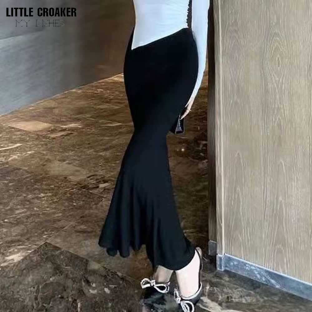 Women Fashion Punk Style Retro Jacquard Mermaid Skirt Halloween Gothic Victorian Steampunk Long Bodycon Ruffle Fishtail Tiered
