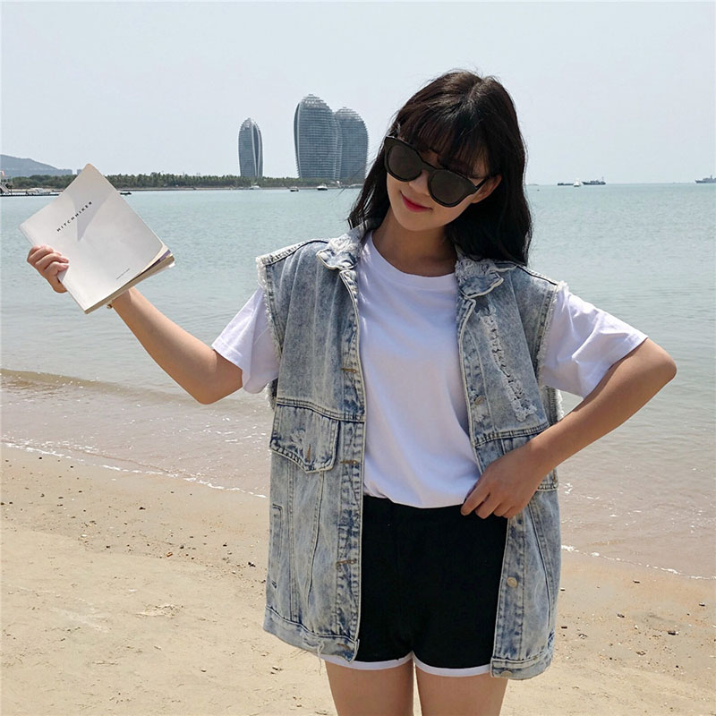 NEW Women Denim Vest Coat Free Size Open Stitch Hole Vintage Sleeveless Vest Jacket Women Vests Denim Cotton Waist Coat Clothing