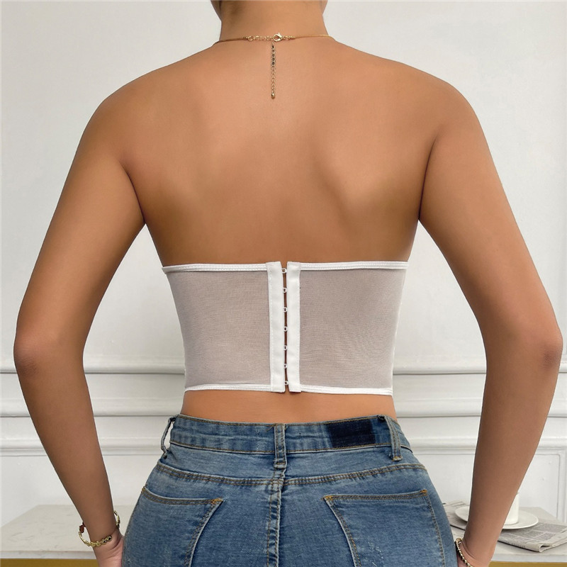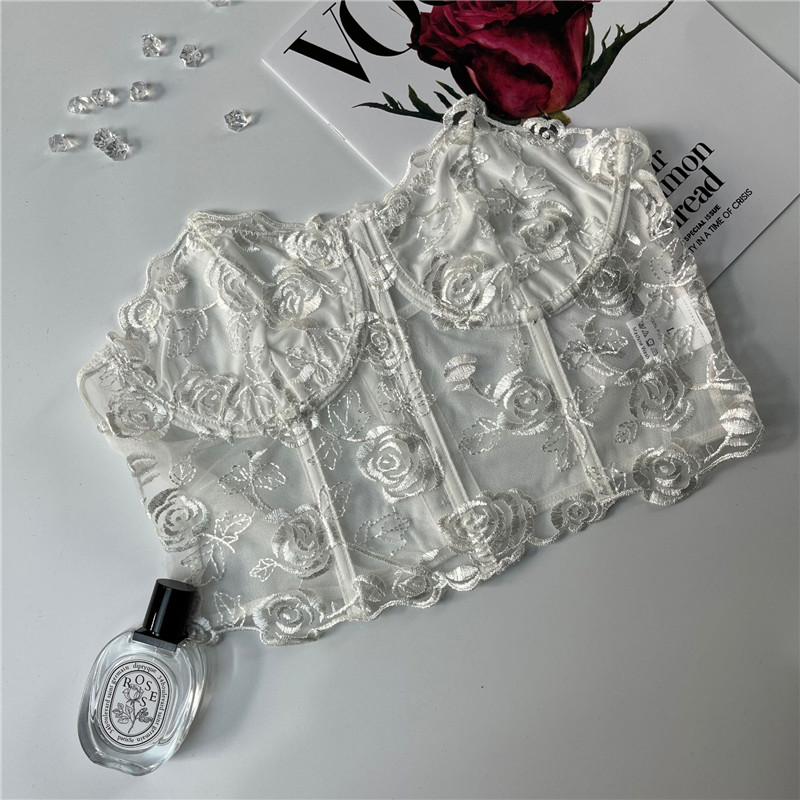 Women Sexy Corset Top Lace Embroidery Floral See Through Off Shoulder Tank Tops Summer Mesh Strapless Backless Blouses Shirts