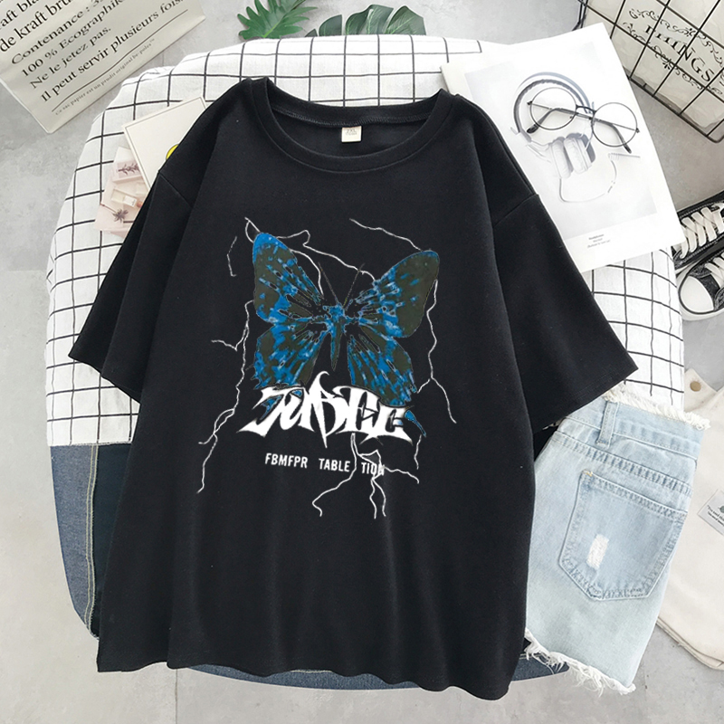 Women T Shirt Streetwear Harajuku Oversized T-shirtFemale Butterfly Short Sleeve Tshirt Hip Hop Loose Unisex Clothes Top Y2k