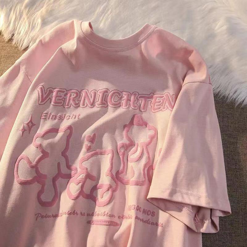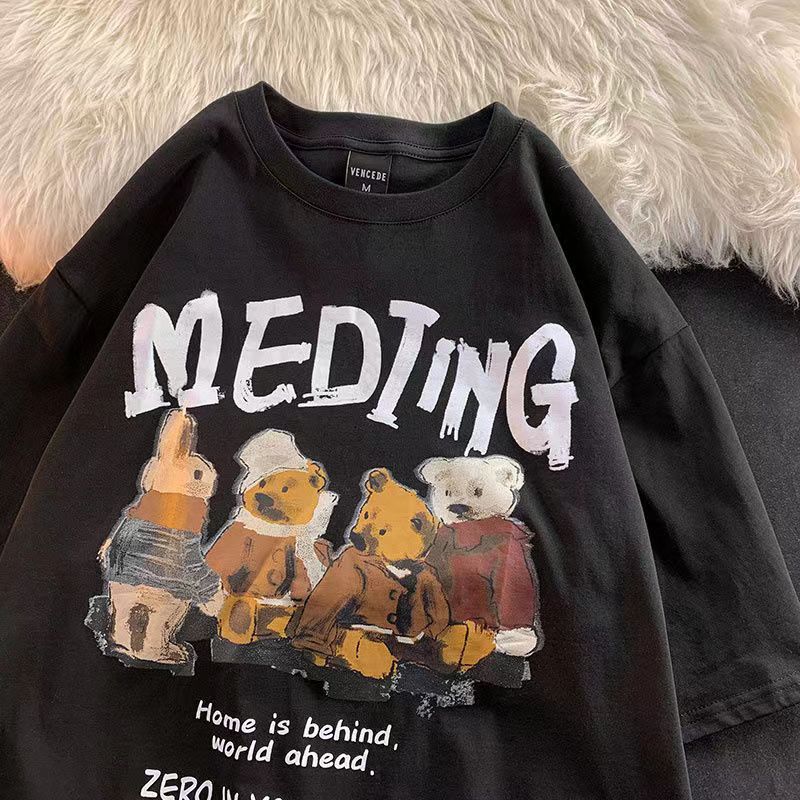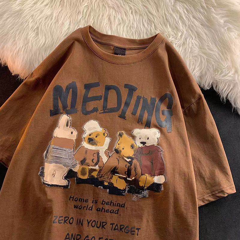 Women Tops Cartoon Bear Print T Short-sleeved Shirt Women's Spring and Summer Loose Men's and Women's Y2K Retro T-shirt Y2k Top