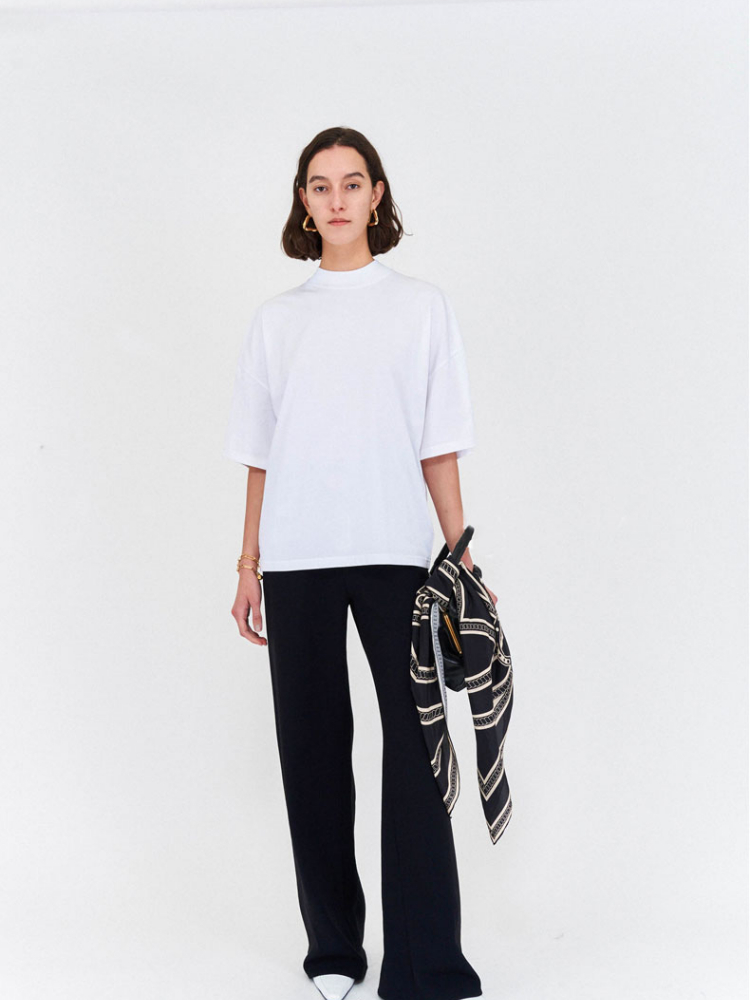 Women T-shirt Spring/Summer The R*w Solid Color Round Neck Slight High Neck Half Sleeve Ladies Casual T-Shirt