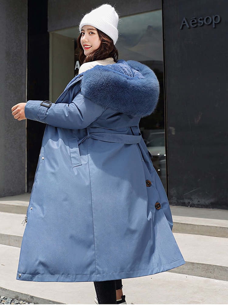 Women's Winter Jacket Hooded X-Long Thick Warm Cotton Padded Parkas Woman Wool Liner Distachable Plus Size Jackets Coat