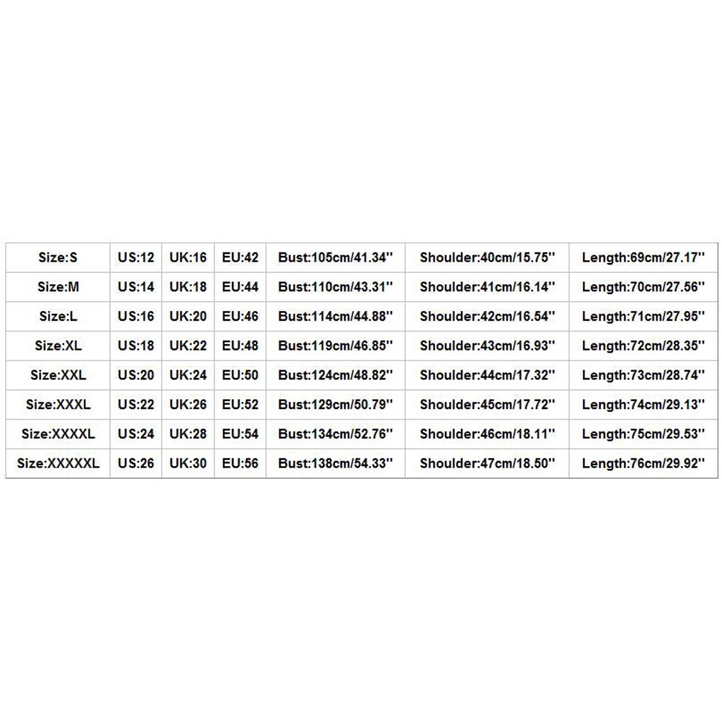 Size:XXXXL | US:24 | UK:28 | EU:54 | Bust:142cm/55.91'' | Shoulder:46cm/18.11'' | Length:75cm/29.53'' |