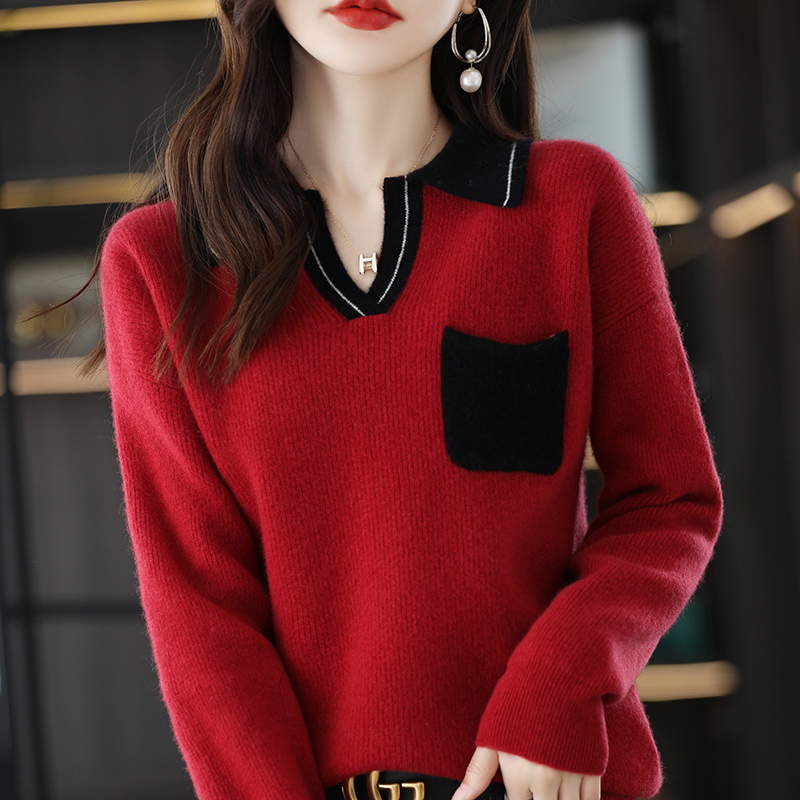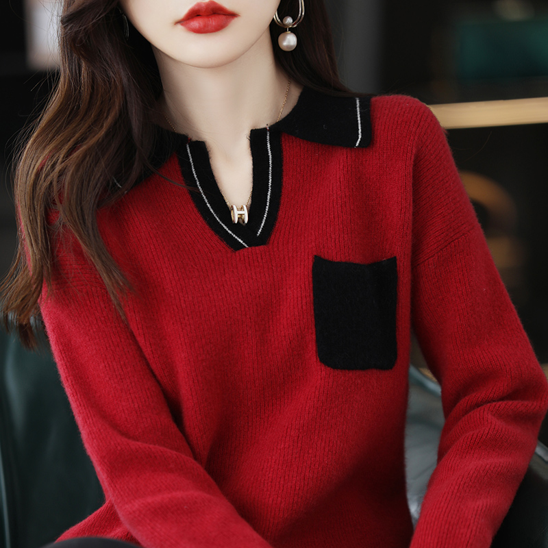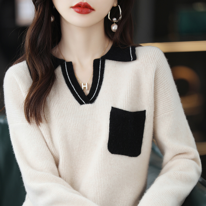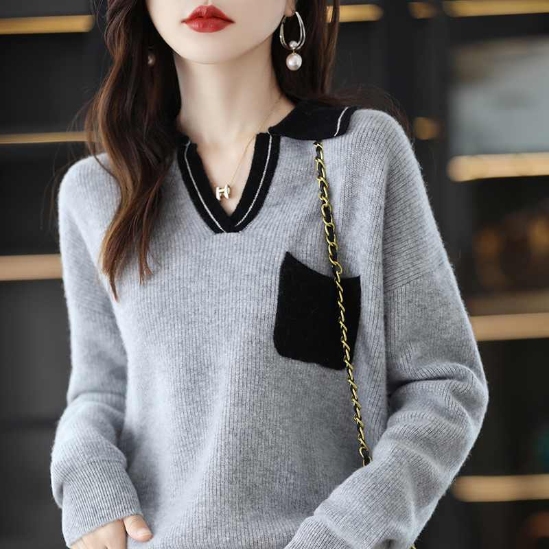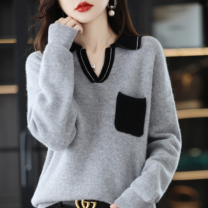 Wool Cashmere Sweater Women's Autumn Winter Polo Lapel Loose Large Size Bottoming Knitted Sweater Top For Female