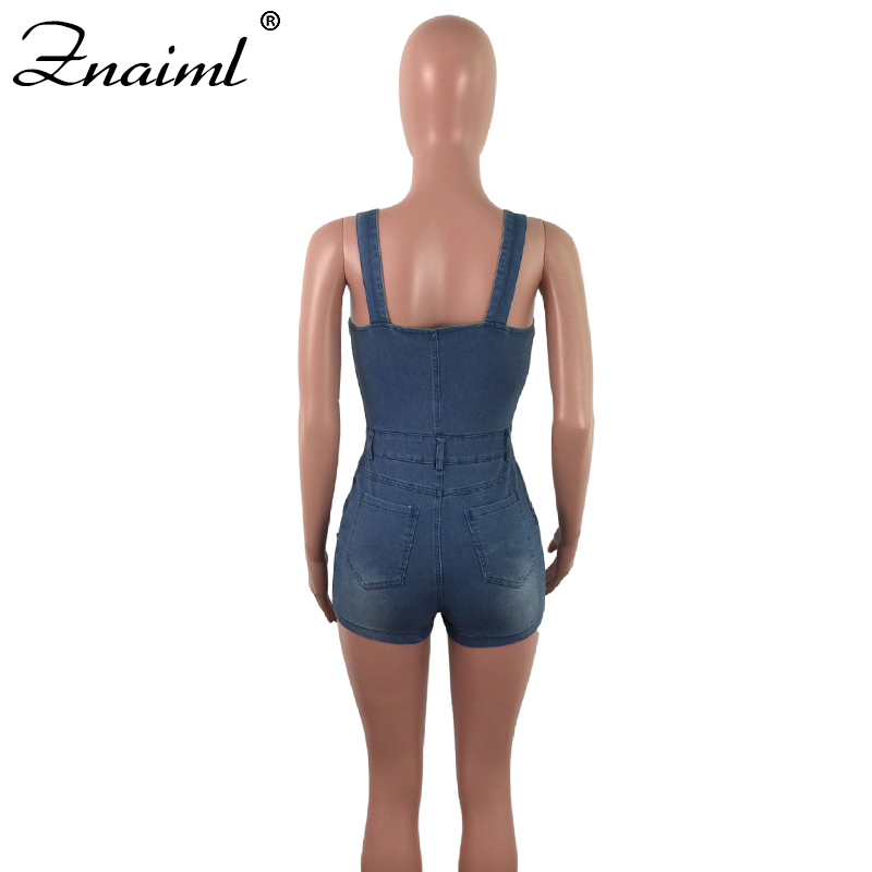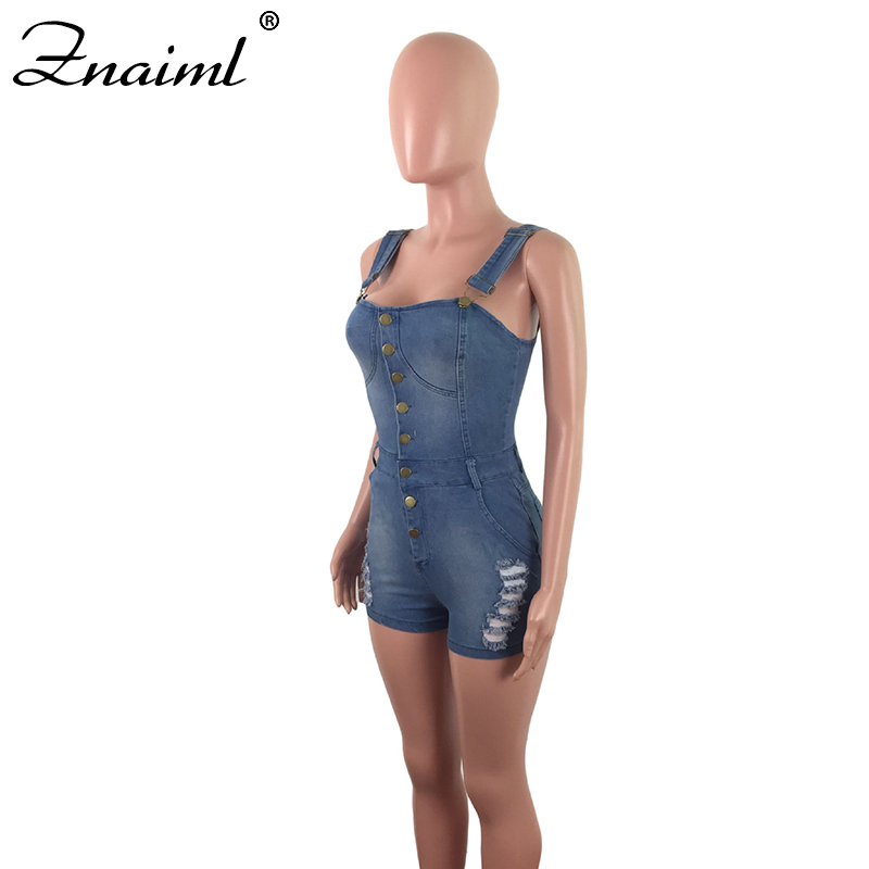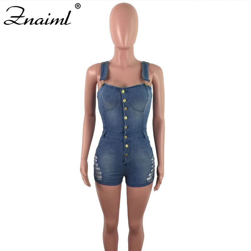 Znaiml Sexy Denim Jumpsuit Spaghetti Strap Women's Rompers Shorts Playsuit Ripped Button Jeans Overalls Playsuit Streetwear