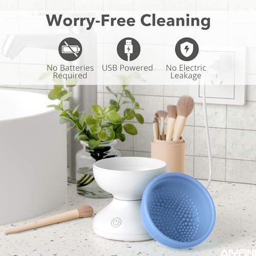 Alyfini Makeup Brush Cleaner Machine - Electric Make up Brushes Cleaner Cleanser Professional Tool for Kabuki Foundation Liquid Powder Face Makeup Self Tanner Brush,Gifts for Women Stocking Stuffers