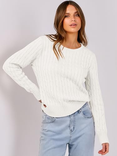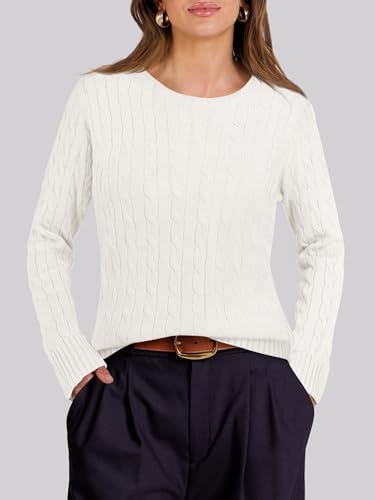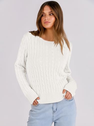 ANRABESS Womens Long Sleeve Cable Knit Sweater Jumper Crewneck Pullover Soft Dressy Casual Tops Cute 2024 Fall Trendy Outfits