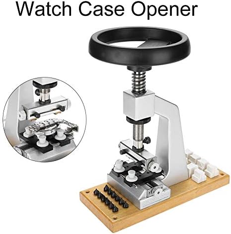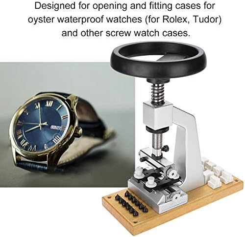 This bench watch case opener is virtually the same as much as 8x more expensive options from well-known watch tool makers. It includes 2 options for holding the watch and 2 options for removing the case back .Options for holding the case are (matching the expensive brand products):- 2 curved plastic holders that fit inside the lugs in multiple sizes (6, 11, 13, 15, 17, 19, 20 and 22mm)- 4 pins than hold the case in place from outside (used for non-curved cases or lug-widths)Options for removing the case back are (also matching the expensive brand products):- round attachments specific to Rolex case backs- friction-held pins for standard watch case backs (similar to standard hand-held case back removal tools)Although the quality of materials and construction are not close to the more expensive options, it is, for the most part, good enough.The one problem I found was with the friction-held pins for non-Rolex case backs.The pins don't hold well, and one fell out while I was testing.This risks scratching the case back, which is the main benefit of using a bench opener vs. a hand-held opener.Since this happened with I released the wheel before it returned to the released position, the risk can be avoided (I think) by slowly raising the wheel fully before releasing it.For the most part, this generic bench watch case opener is a really good alternative to much more expensive options.