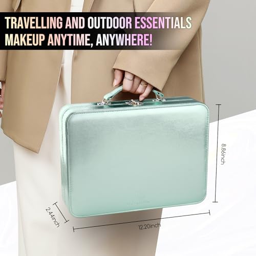 Large Makeup Bag, Portable Travel Makeup Bag Organizer for Women Girls with Makeup Brush Compartment & Two Side Pockets, Cosmetic Travel Bag Vertical Storage Toiletry Bag - Black