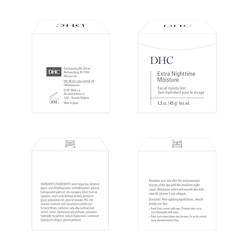 DHC Extra Nighttime Moisture is a vitamin-rich moisturizing night cream that absorbs instantly to offer deep moisture relief for chronically dry skin, but all skin types will benefit. It’s loaded with botanical ingredients to soothe skin and protective antioxidants to fend off the day’s environmental stresses. Contains olive oil, squalane and vitamin E to hydrate and maintain the skin’s natural moisture barrier, plus hydrolyzed collagen to promote the appearance of elasticity. Ideal for dry skin but great for all skin types.