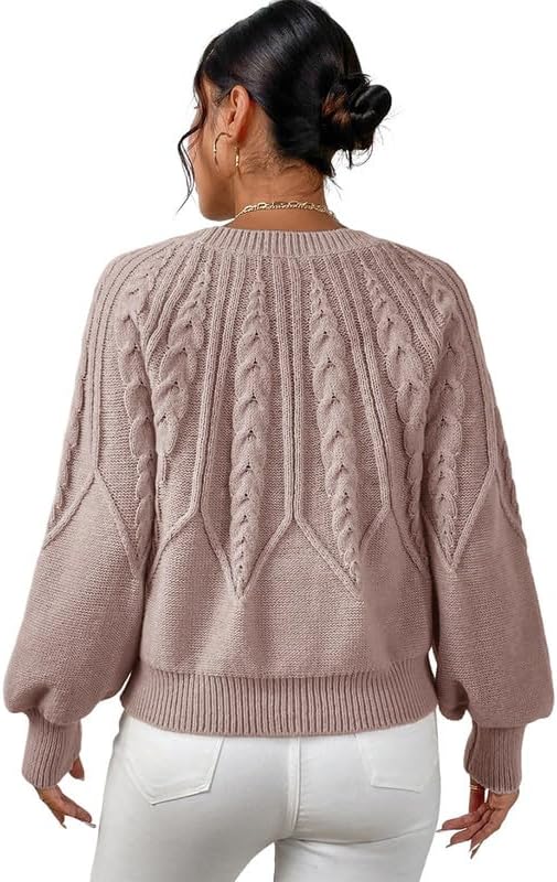 Dokotoo Womens Sweaters Crewneck Long Sleeve Cable Knit Chunky Sweater Tops Fashion 2024 Fall Outifits