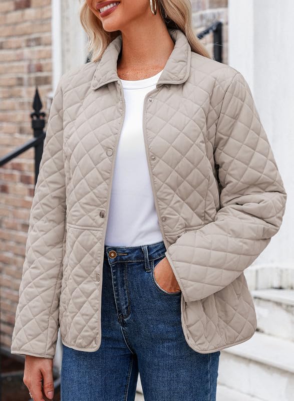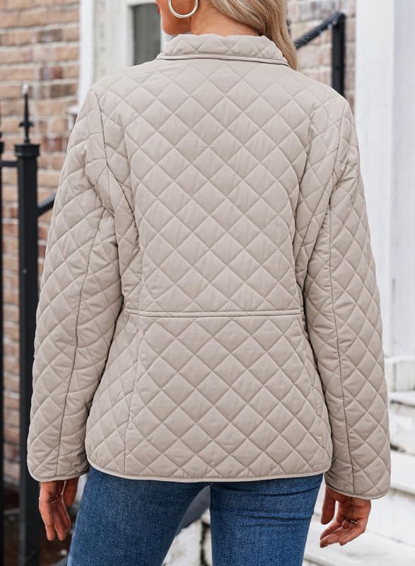 Dokotoo Women's Winter Quilted Jackets Long Sleeve Button Down Diamond Puffer Jacket Outerwear Coats with Pockets