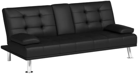 Flamaker Futon Sofa Bed Modern Folding Futon Set Convertible Recliner Lounge for Living Room with 2 Cup Holders, Removable Armrests (PU Leather, Black)