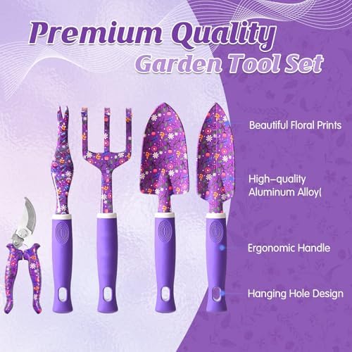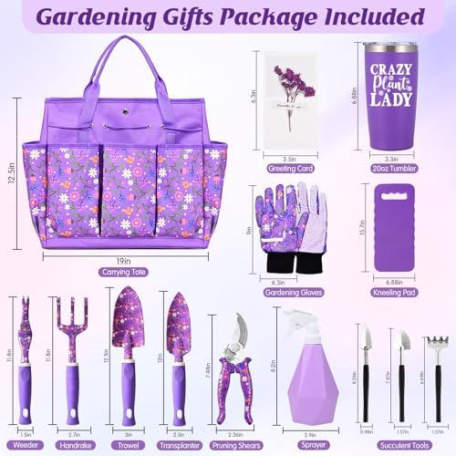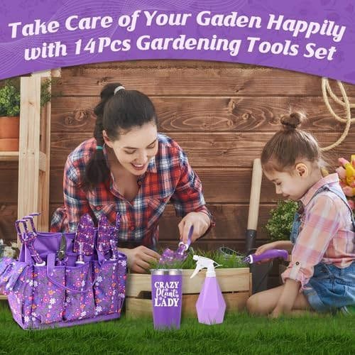 Gardening Gifts for Women, Gardening Tools for Women, 14 PCS Garden Tools Set Kit with Garden Tool Bag, Plant Lover Gifts Birthday Gifts for Mom Grandma Aunt (Purple)