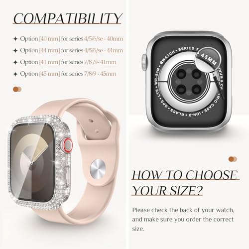Customer Reviews 4.5 out of 5 stars 3,966 4.5 out of 5 stars 3,897 4.3 out of 5 stars 76 4.5 out of 5 stars 3,494 4.5 out of 5 stars 2,245 4.5 out of 5 stars 4,036 4.1 out of 5 stars 235 Price $13.99 $12.99 $16.99 $9.99 $16.99 $16.99 $19.99 Compatible Models iWatch All Series iWatch Series 9/8/7/6/5/4/SE iWatch Series 9/8/7/6/5/4/SE Apple Watch All Series iWatch Series 9/8/7/6/5/4/SE iWatch Series 9/8/7/6/5/4/SE Apple Watch All Series Materials Double-rows rhinestones Single-row rhinestones Unique shiny crown metal strap Silicone Silicone Silicone Stainless steel Feature Not waterproof Not waterproof With a bling waterproof case Special glitter fabric surface Special glitter fabric surface Special glitter fabric surface Soft slim metal rope Feature Edge protection Full screen protection Fashinonale & durable Soft & comfortable Soft & comfortable Soft & comfortable Fashionable & stylish Package 4 Pack 2 Pack 1 * Band + 1 * Case 1 * Band 1 * Band + 1 * Bumper 1 * Band + 1 * Bumper 1 * Band