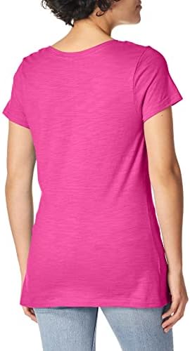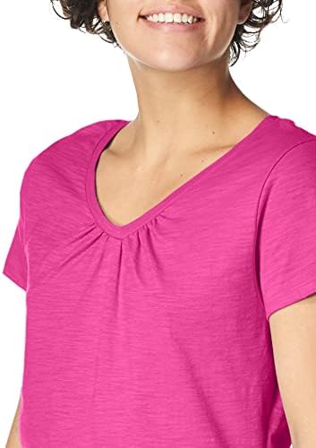 This is a reasonable priced tee with a little bit of feminine detail. I’m a size 8-10 and would normally wear a size M if it’s preshrunk. I want to be able to wash and dry casual clothing with my regular laundry without special care instructions. For that reason I purchased a size L. It seemed a little bit large when I put it on out of the package but after washing and drying it on low, as I do all of my clothes, it fits perfectly. It is definitely NOT as long as it’s pictured. I’m 5’4” and after washing and drying the hem falls at my hip, not below my derrière as the photo implies. I’m happy with my purchase and will buy more of these for doing yard work and being outdoors.